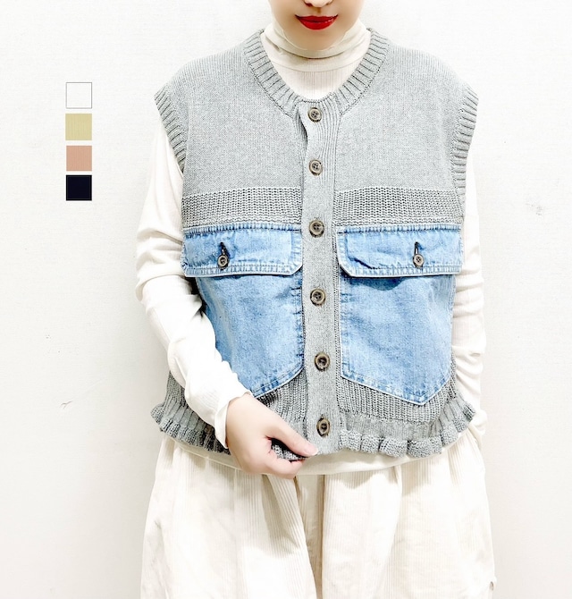 【tumugu】9ozデニムヒッコリーストライプ2wayベスト / TB26107