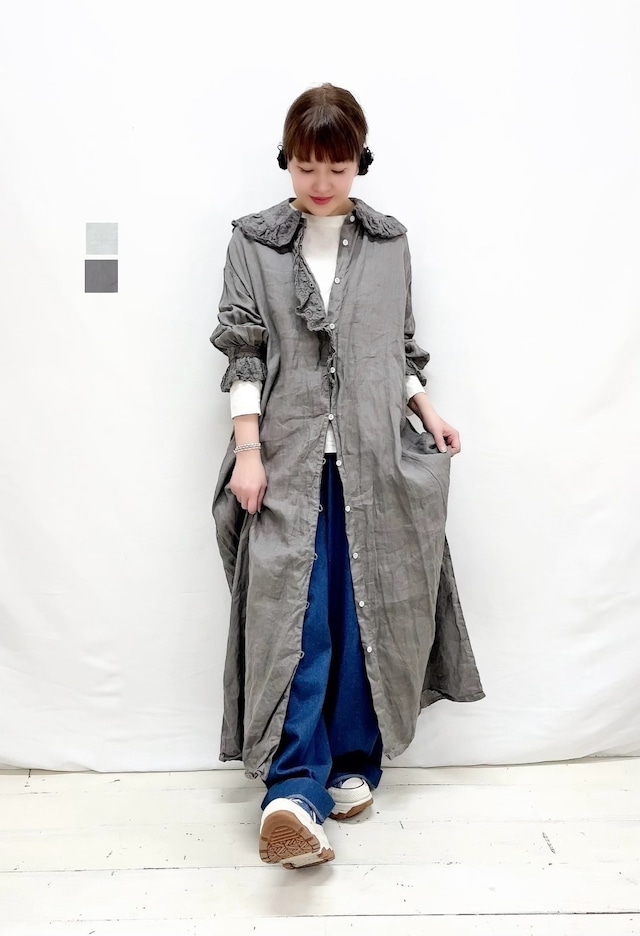 【Gauze#】 ameriアンティークフリルワンピース G1162 ¥29,800+税 color.ROYAL WHITE color.FADE GRAY size F 着丈125cm 身幅63cm 袖丈46cm 肩幅52cm アームホール26cm ※モデル身長153cm着用 LINEN100% ameriアンティークフリルワンピース のご紹介です。ふんわりとしたフリルが 施されたデザインは、どこか懐かしい 雰囲気を醸し出し、女性らしさを引き立てる 一着です。軽やかなコットン素材は柔らかく、 着心地も非常に良好です。ディテールに こだわりを感じさせるフリル使いは、 シンプルながらも洗練された印象を与え、 様々なシーンで活躍すること間違いなしです。 【ご注文の前に】 □当店では店舗で在庫を 共有しており在庫連動システムの 更新のタイミングにより 欠品になる場合がございます。 万が一品切れの場合は何卒 ご容赦頂けます様 よろしくお願い致します。 □画像のお色はブラウザや 設定などにより、 実物の色と若干、 異なる場合がございます。 □採寸の誤差はお許し下さい。 □店舗併用の為、値札シールの はがし跡がありますがご了承ください。