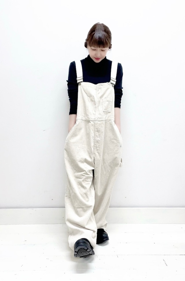 【快晴堂】 オーバーオール 53P-63 ¥24,000+税 color.1 TOPベージュ size 3+ ウエスト幅118cm 裾幅26,5cm 股下65cm 総丈125cm 肩ひも除く ※モデル身長153cm着用 COTTON60% LINEN40% オーバーオールのご紹介です。 コットンにリネンが40%入った珍しい コール天。リネンが入ることで、しなやかさ とハリコシを持ち合わせています。温かみ と無骨さというアンバランスさの風合いが あるコール天です。本来ベージュ色は 優しいイメージですが、TOP系の独特な 染め感による味のある色が男性にも女性 にも似合うベージュを作ります。 後ろに、ヴィンテージライクな少し掠れ のあるステンシルプリントを直プリント しました。着た人には見えないけれど、 人に見せたい、冬のマリンテイストを お楽しみください! □当店では店舗で在庫を 共有しており在庫連動システムの 更新のタイミングにより 欠品になる場合がございます。 万が一品切れの場合は何卒 ご容赦頂けます様 よろしくお願い致します。 □画像のお色はブラウザや 設定などにより、 実物の色と若干、 異なる場合がございます。 □採寸の誤差はお許し下さい。 □店舗併用の為、値札シールの はがし跡がありますがご了承ください。