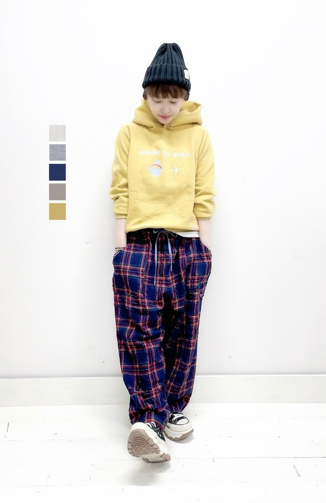 【快晴堂】 裏起毛ロゴパーカー ポーラールートサザンルート 53C-118 ¥16,000+税 color.1 生成り color.2 TOPグレー color.6 ネイビー color.8 カーキベージュ color.11 アンティークイエロー size 3+ 着丈60cm 身幅55cm 裄丈74cm 袖幅22,5cm ※モデル身長153cm着用 size 5+ 着丈66cm 身幅55cm 裄丈80cm 袖幅24cm COTTON100% 裏起毛ロゴパーカー ポーラールート サザンルートのご紹介です。このトレーナー とパーカーには普通の裏毛ではなく3トビ裏毛を 使っています。裏毛のループ目を3目 飛ばしていて、それが生地の表に影響して、 デコボコ感があり素材の表情がよく出ます。 また、パイルが均一ではなく自由に 並んでいてとても良い雰囲気を醸し出します。 パイルが少し起毛しているので、内側が 柔らかく温かみのある肌触りとなっていて 優しい着心地のトレーナーとパーカーです。 □当店では店舗で在庫を 共有しており在庫連動システムの 更新のタイミングにより 欠品になる場合がございます。 万が一品切れの場合は何卒 ご容赦頂けます様 よろしくお願い致します。 □画像のお色はブラウザや 設定などにより、 実物の色と若干、 異なる場合がございます。 □採寸の誤差はお許し下さい。 □店舗併用の為、値札シールの はがし跡がありますがご了承ください。