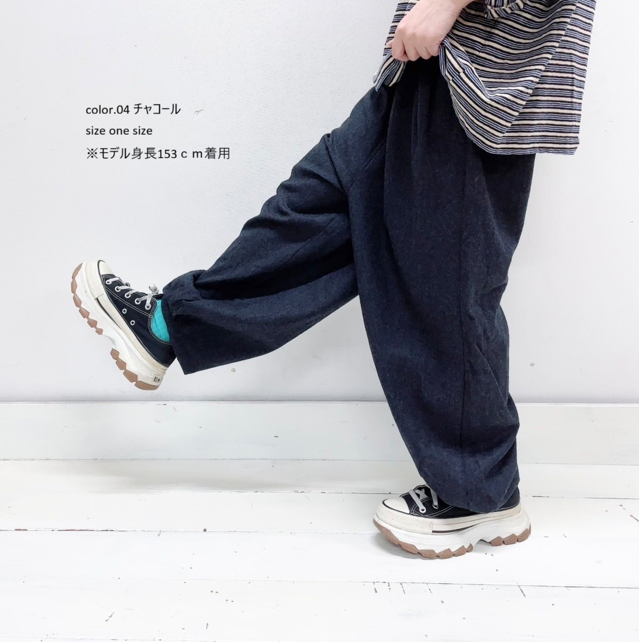 【prit】2/48ウール綾織裾タックバギーパンツ / P70608