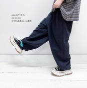 さらりとした綿素材が心地よく、肌に優しい着心地を実現しています。裾にはヒモが施され、自由にシルエットを調整することができるため、さまざまなスタイルを楽しめます。ゆったりとしたワイドシルエットは特にリラックス感があり、カジュアルなコーディネートにぴったりです。