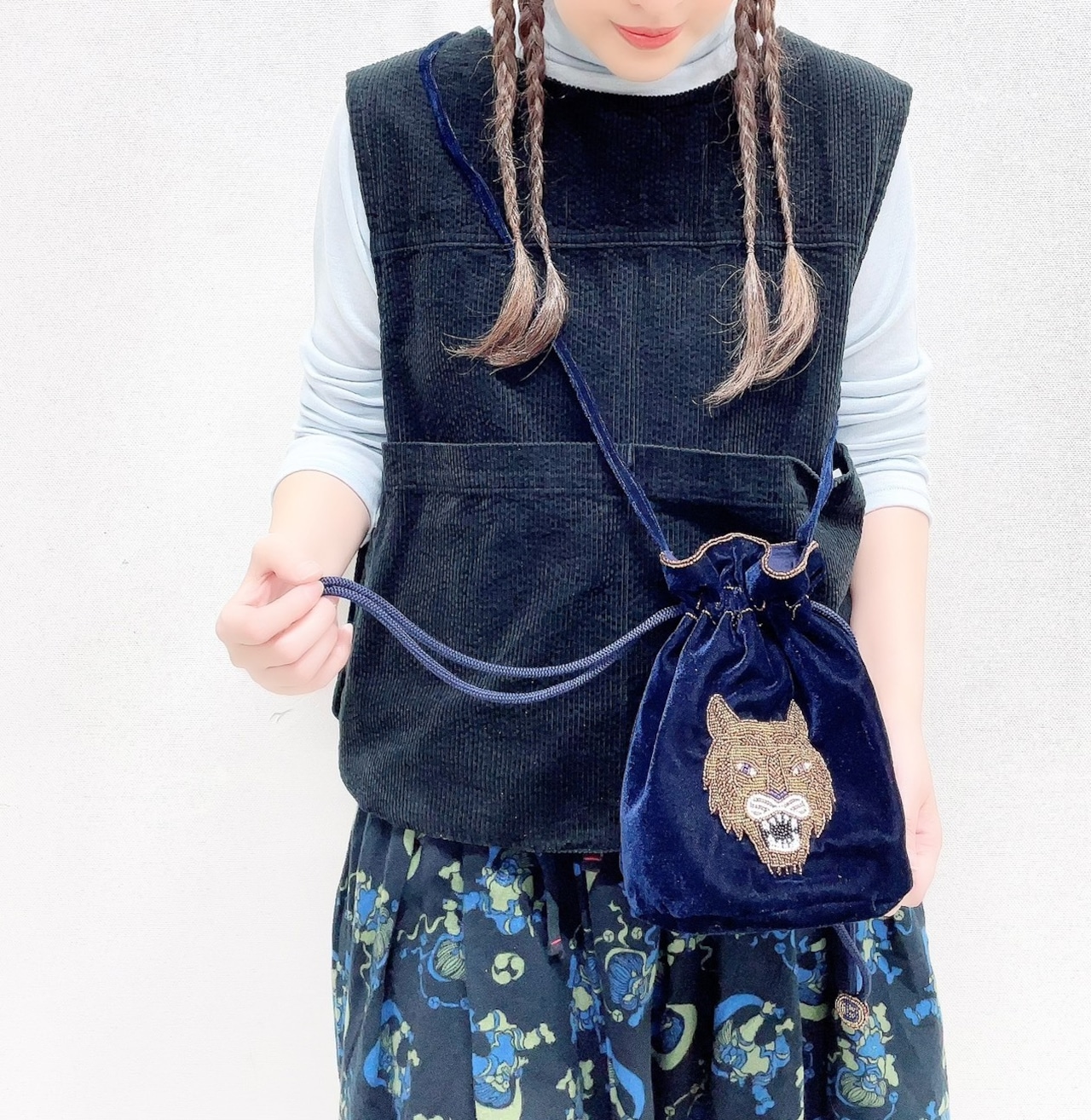 【TIGRE BROCANTE】Tiger刺繍巾着バック / HF-56-GD