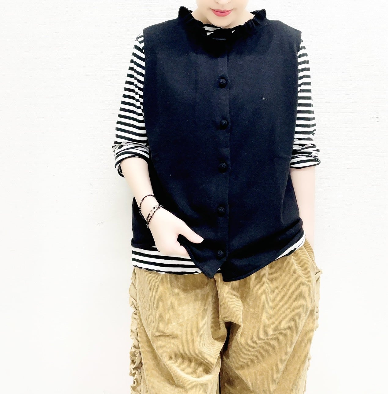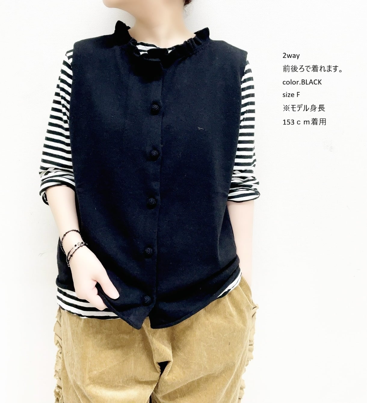 【Gauze#】フリルカラー2WAYニットベスト / G1130