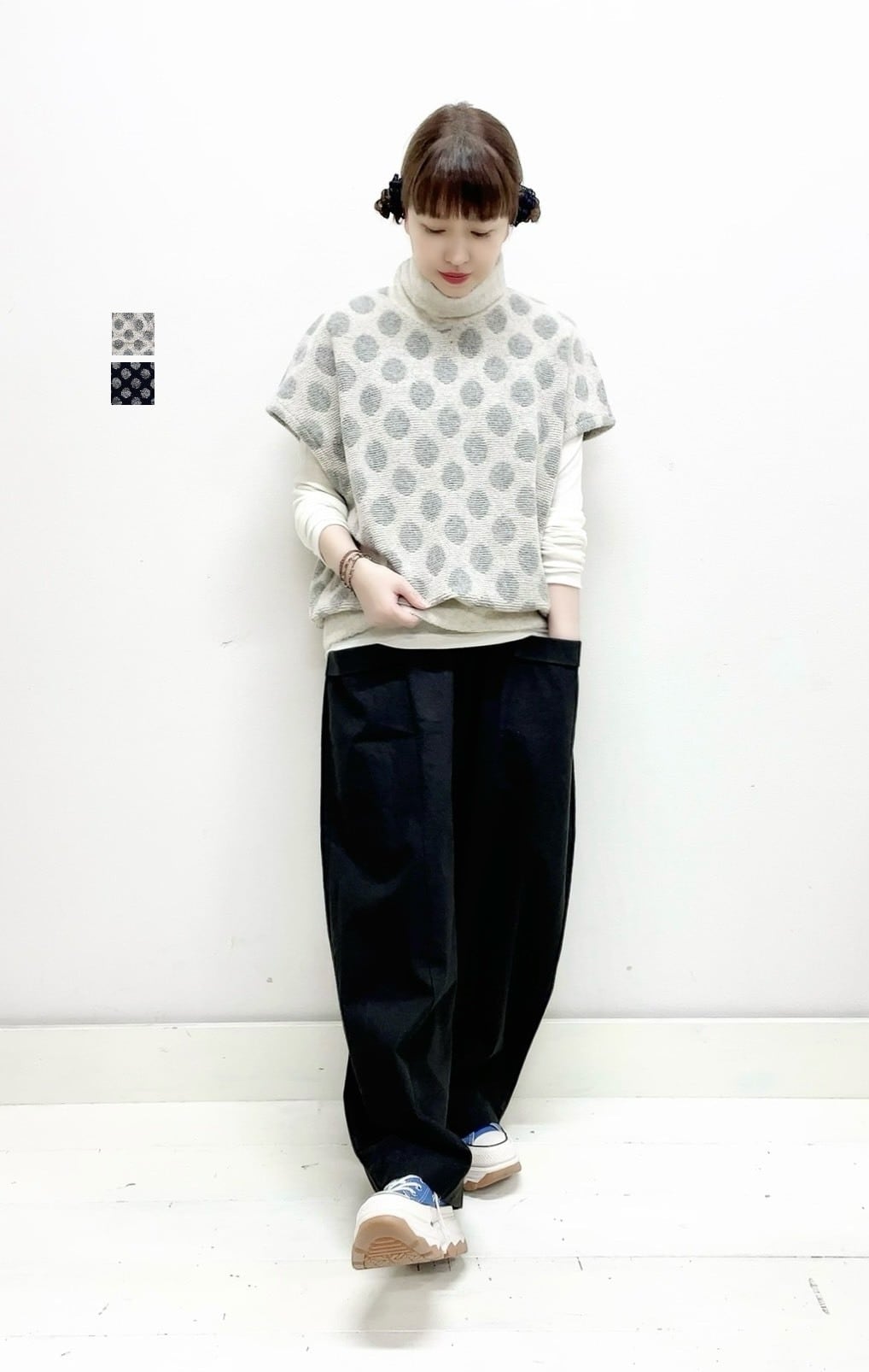 【prit】ウールパイルドットジャガードタートルネックプルオーバーベスト / P90607