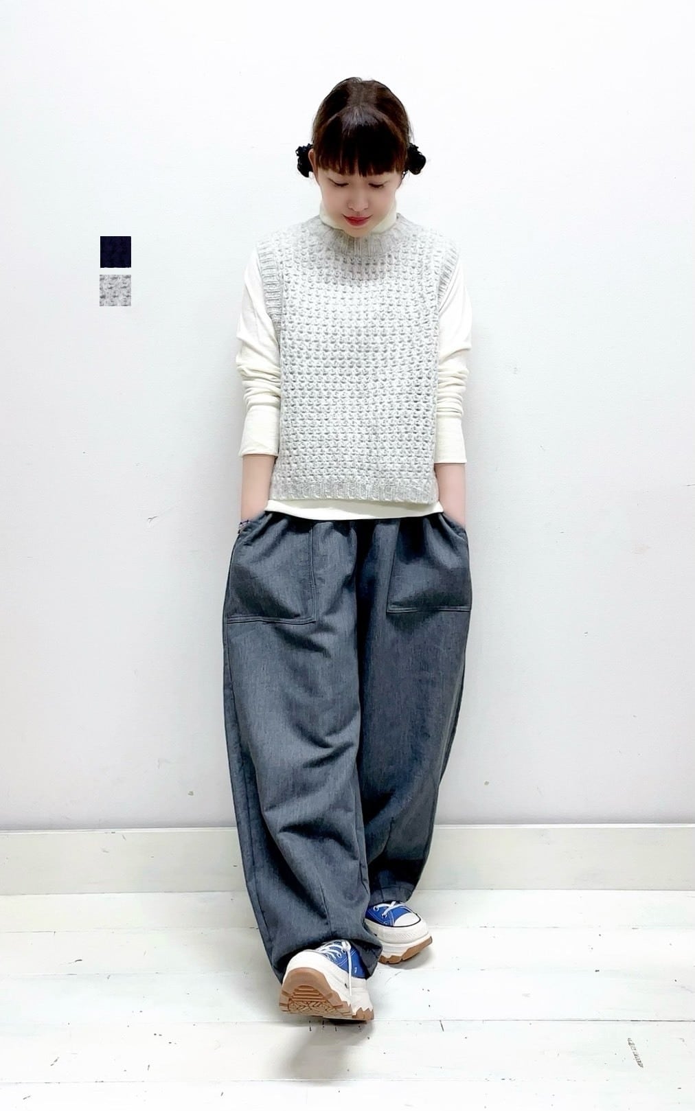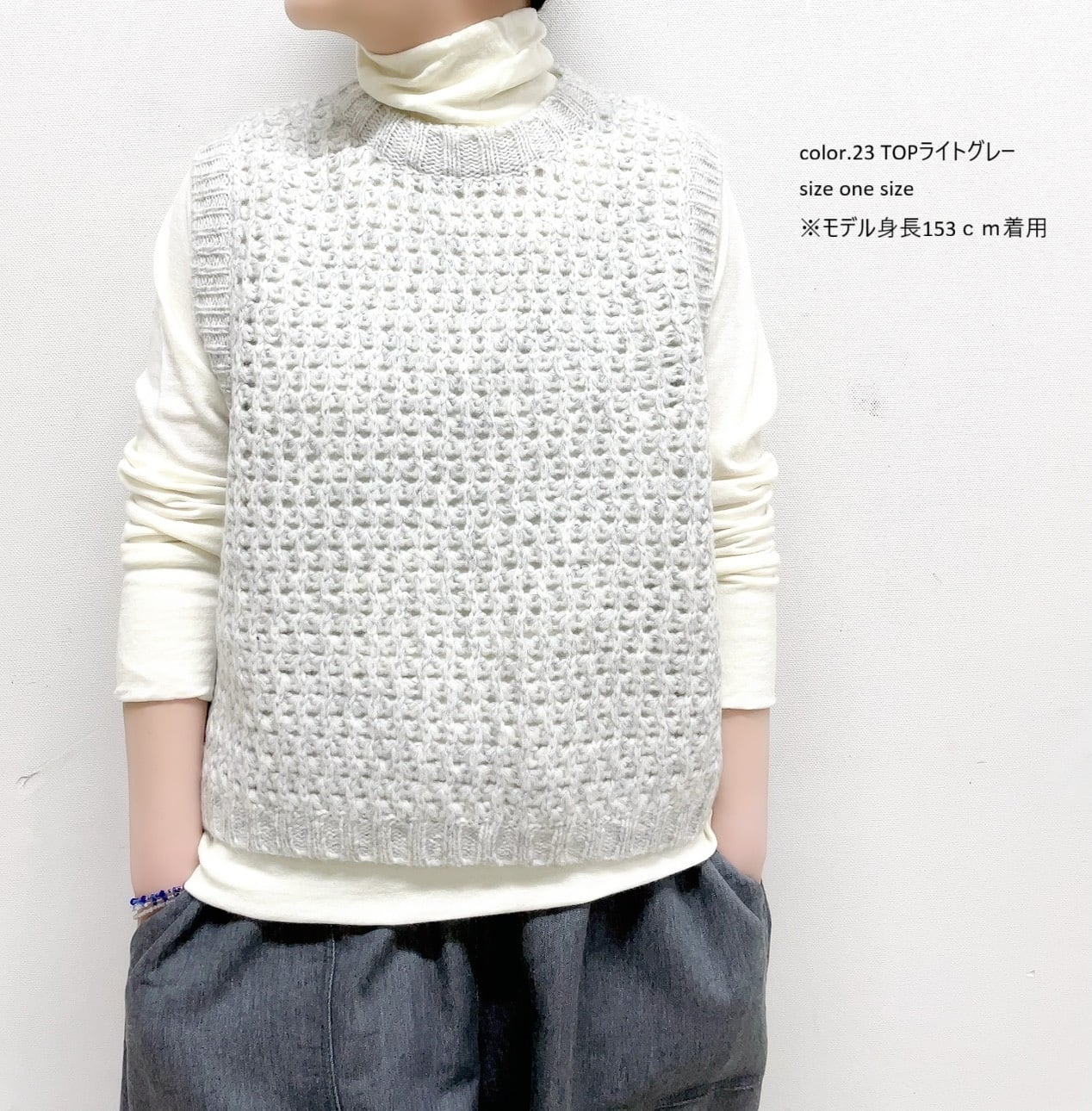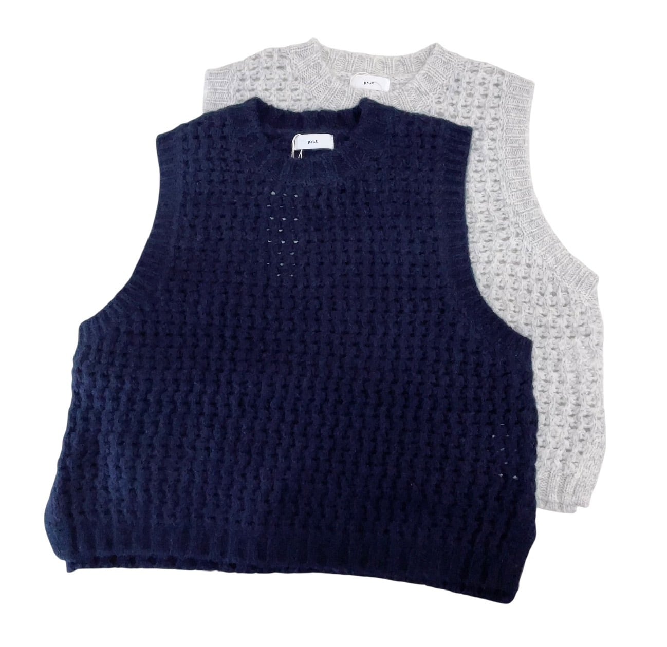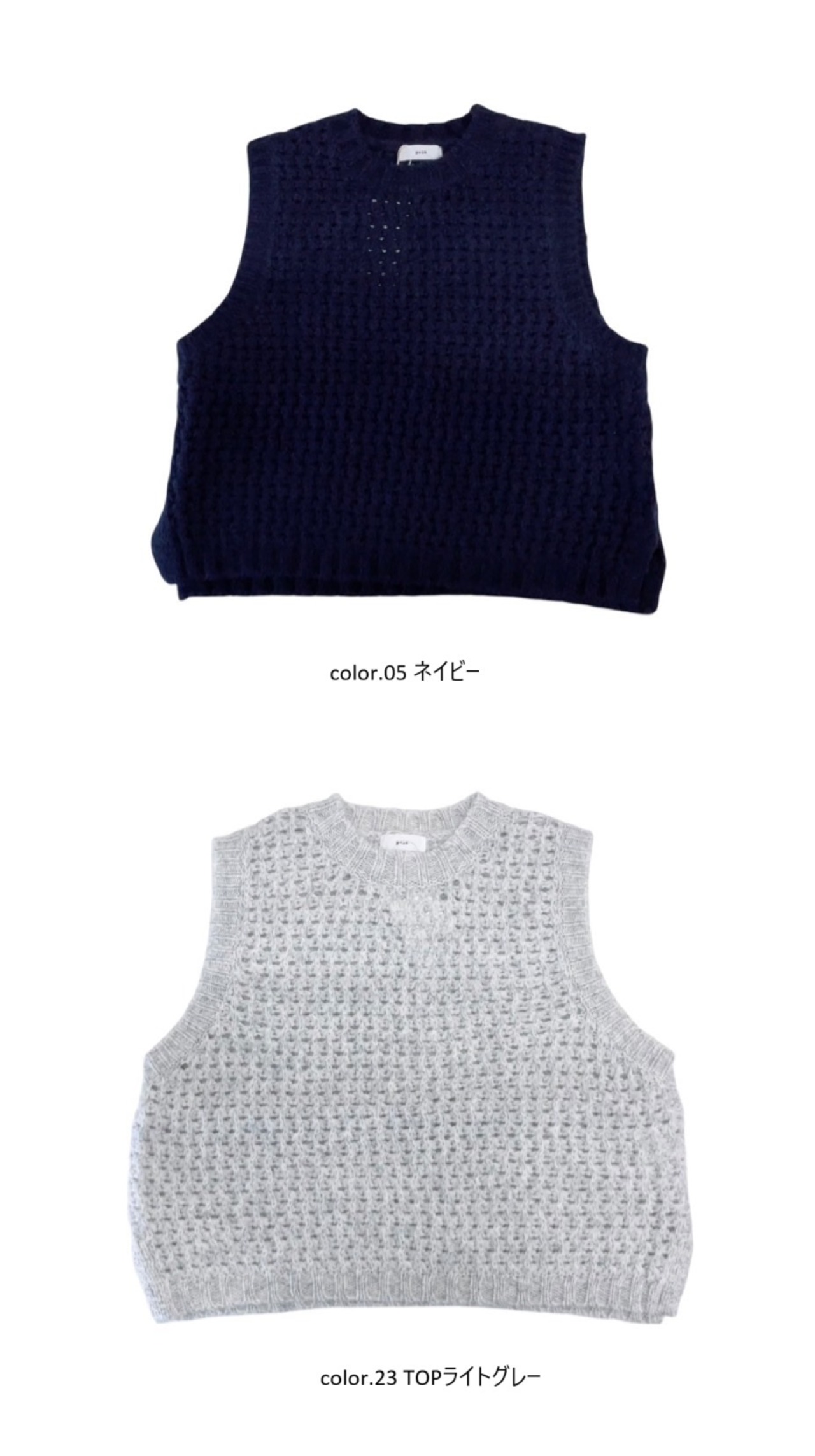 【prit】1/3ウールナイロン3Gワッフル編みクルーネックベスト / P906103