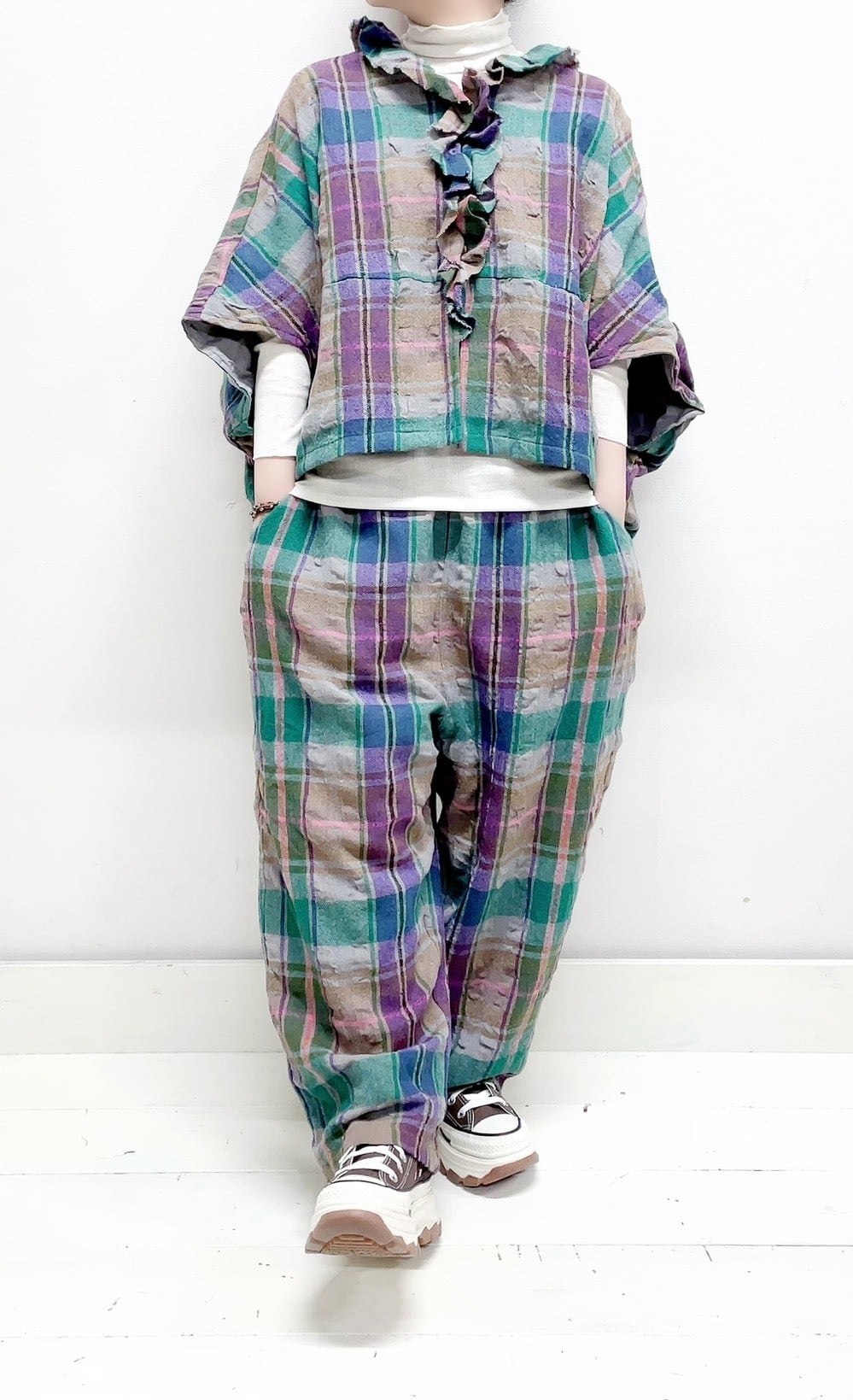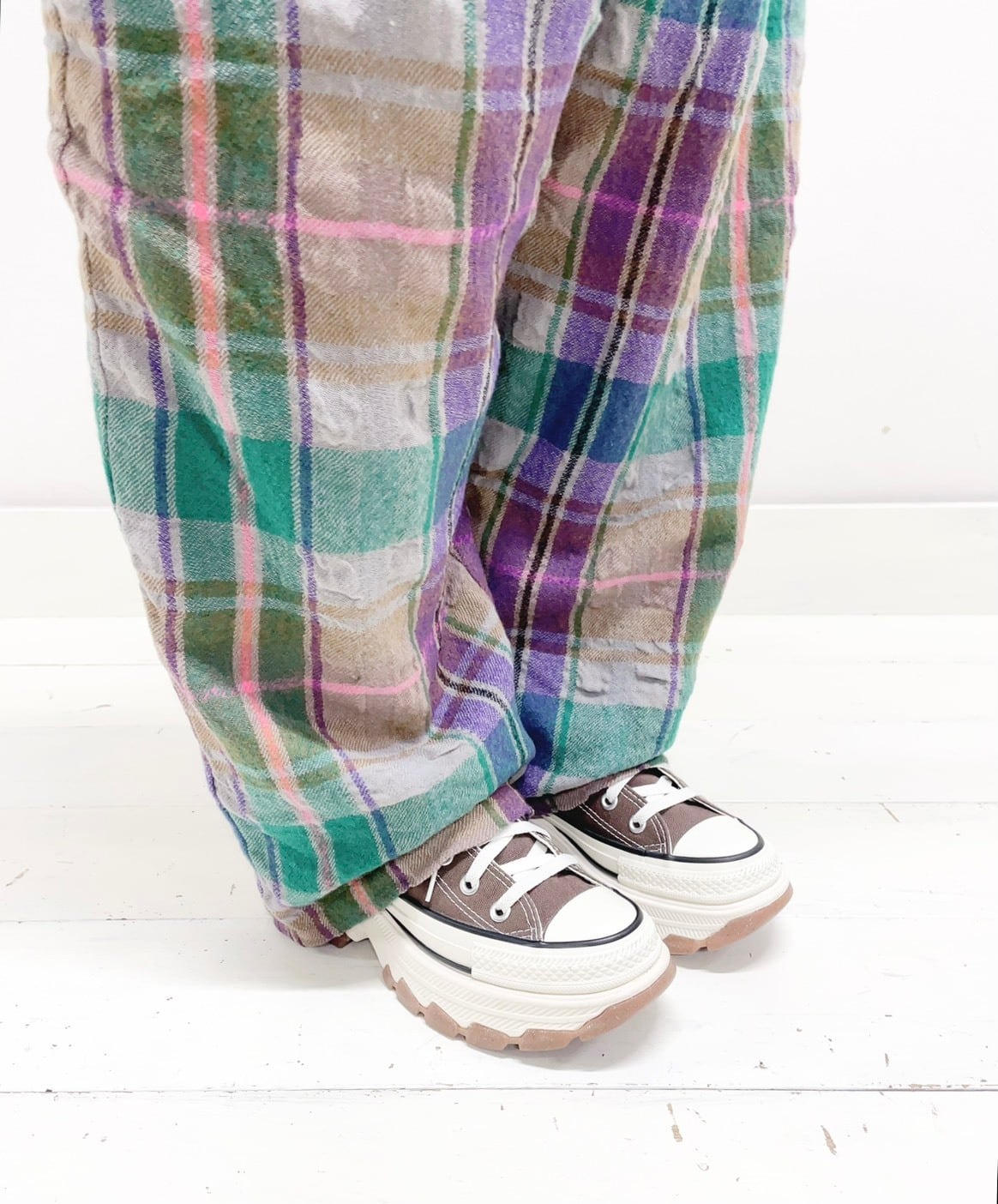 【tumugu】ウールコットンチェックパンツ / TB25341