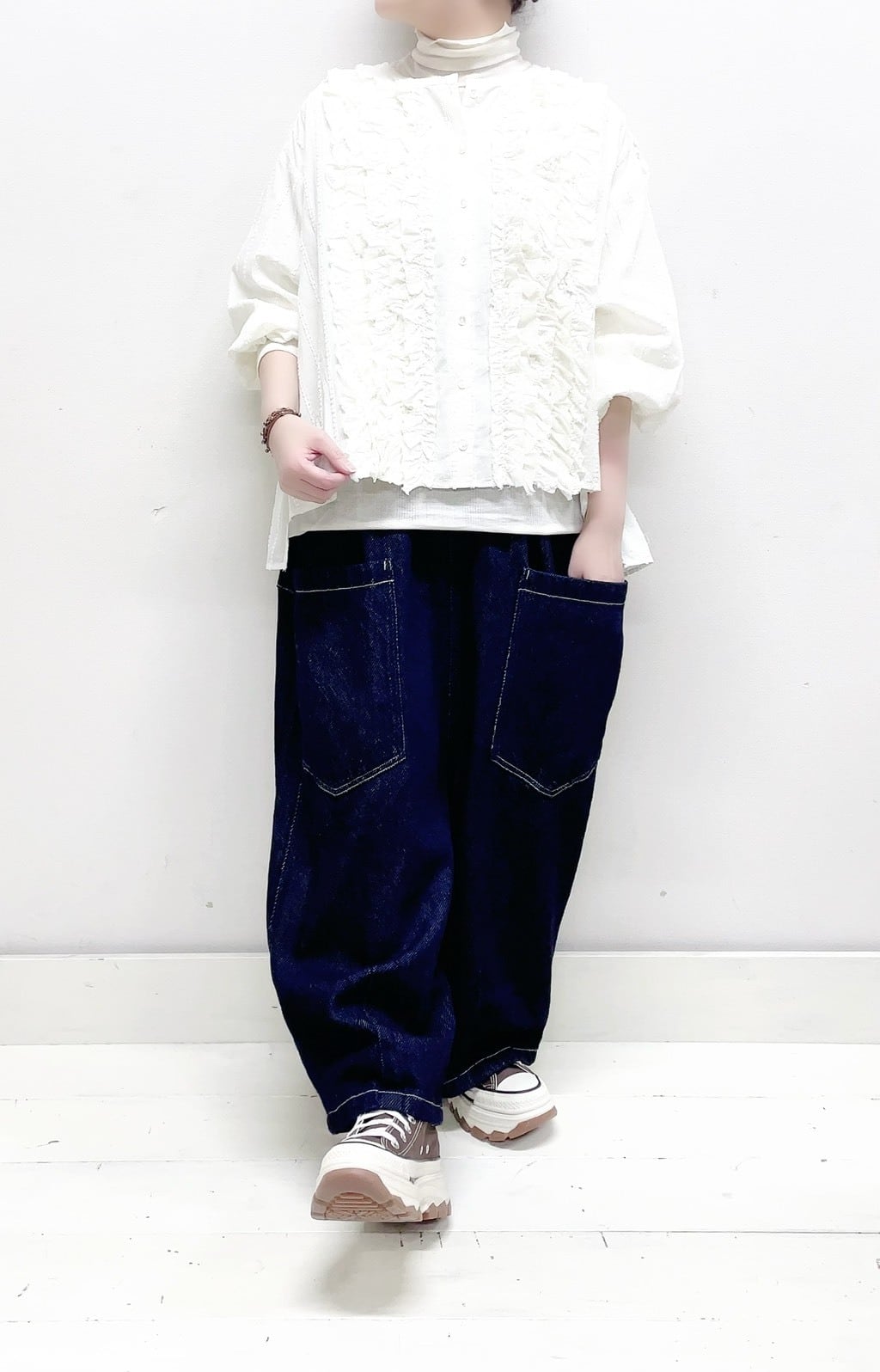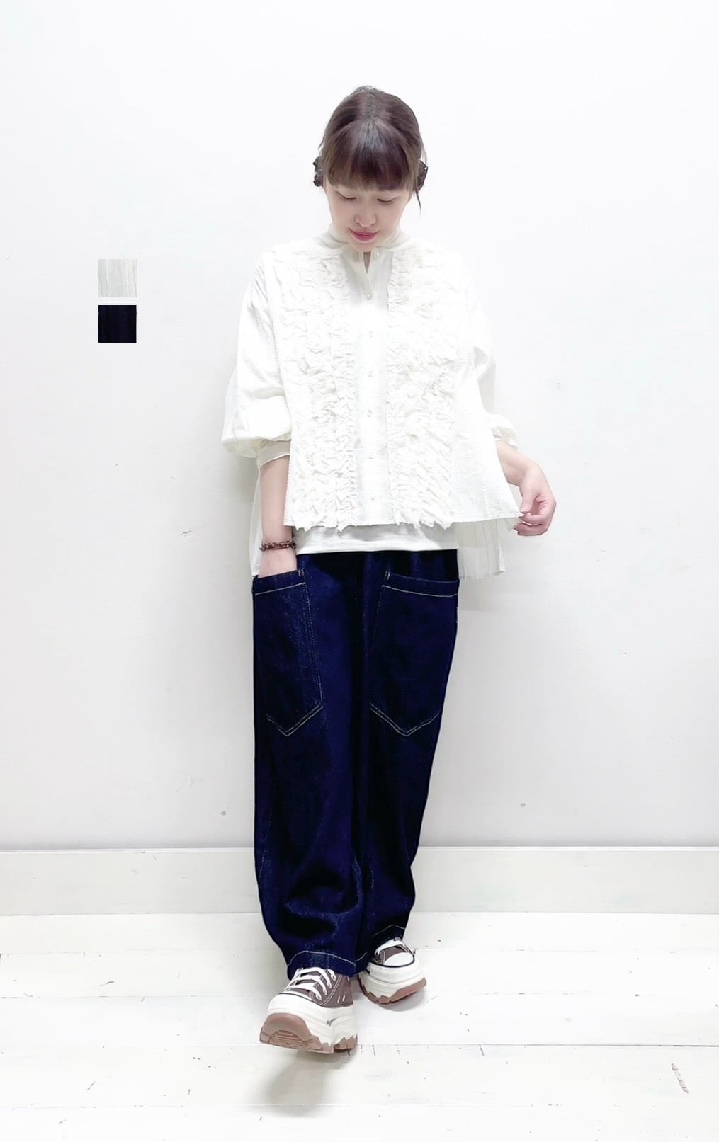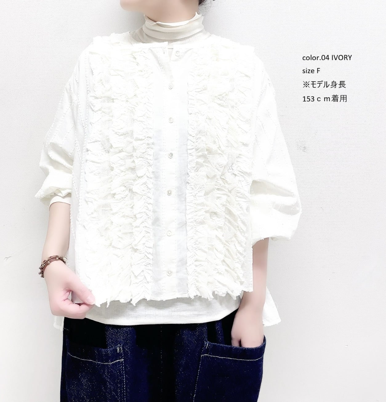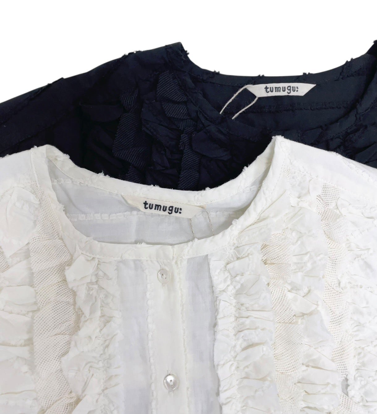 【tumugu】ストライプフリンジドビーブラウス / TB25413