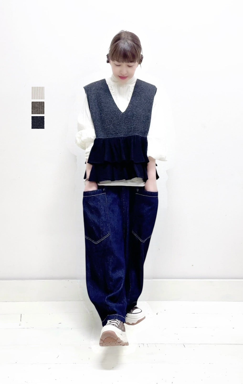 【tumugu】メリノウール×アルパカ2wayベスト / TK25405