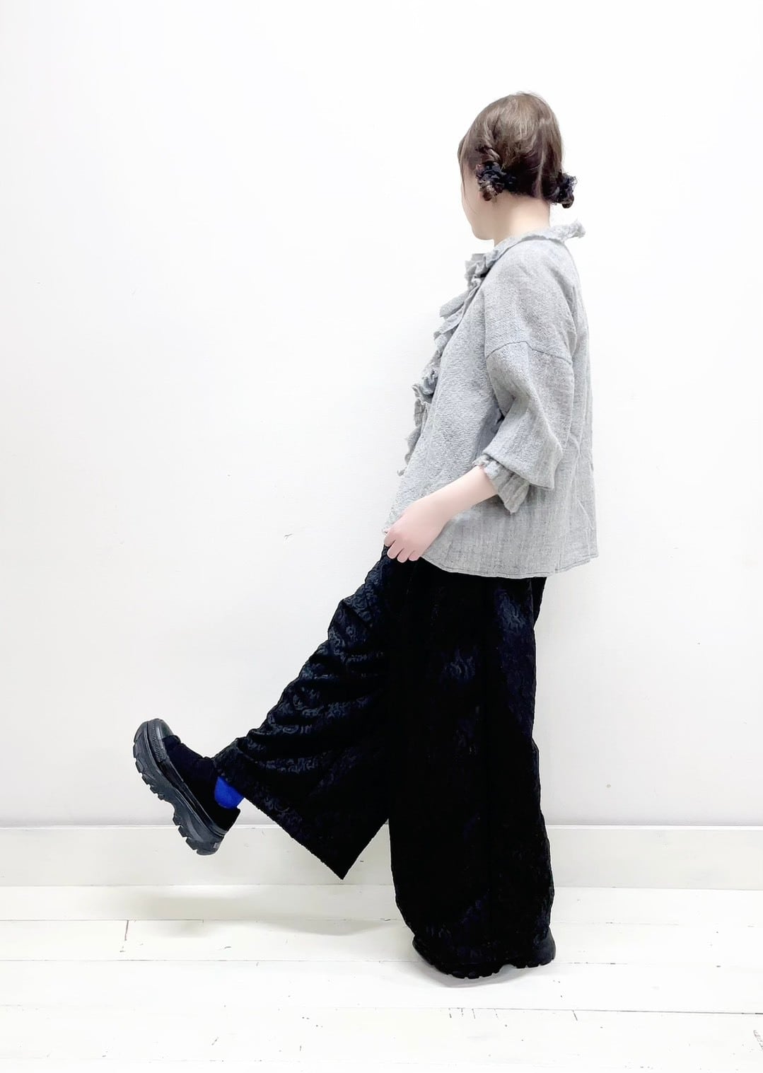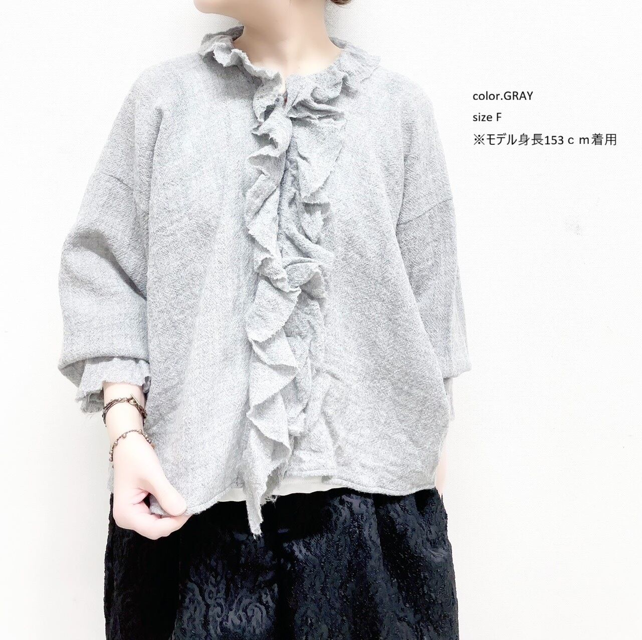【(g)】ウールガーゼフリルトリムブラウス / g-661