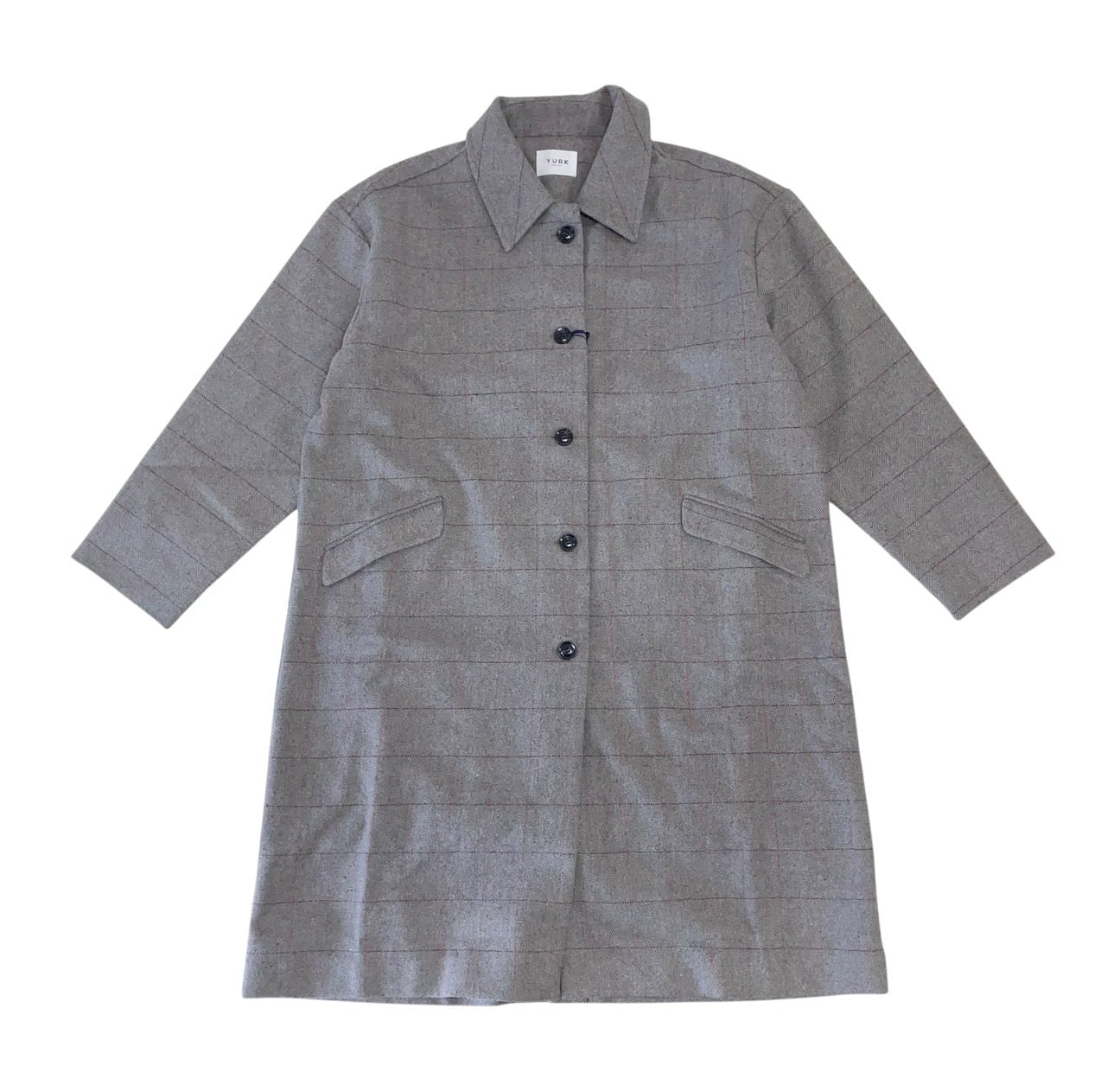 【YURK】ウール混チェックステンカラーコート / yurk25wt-514
