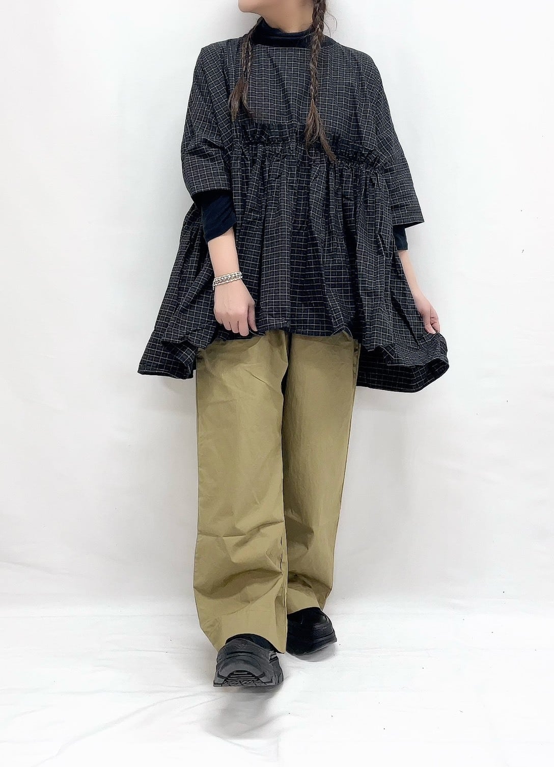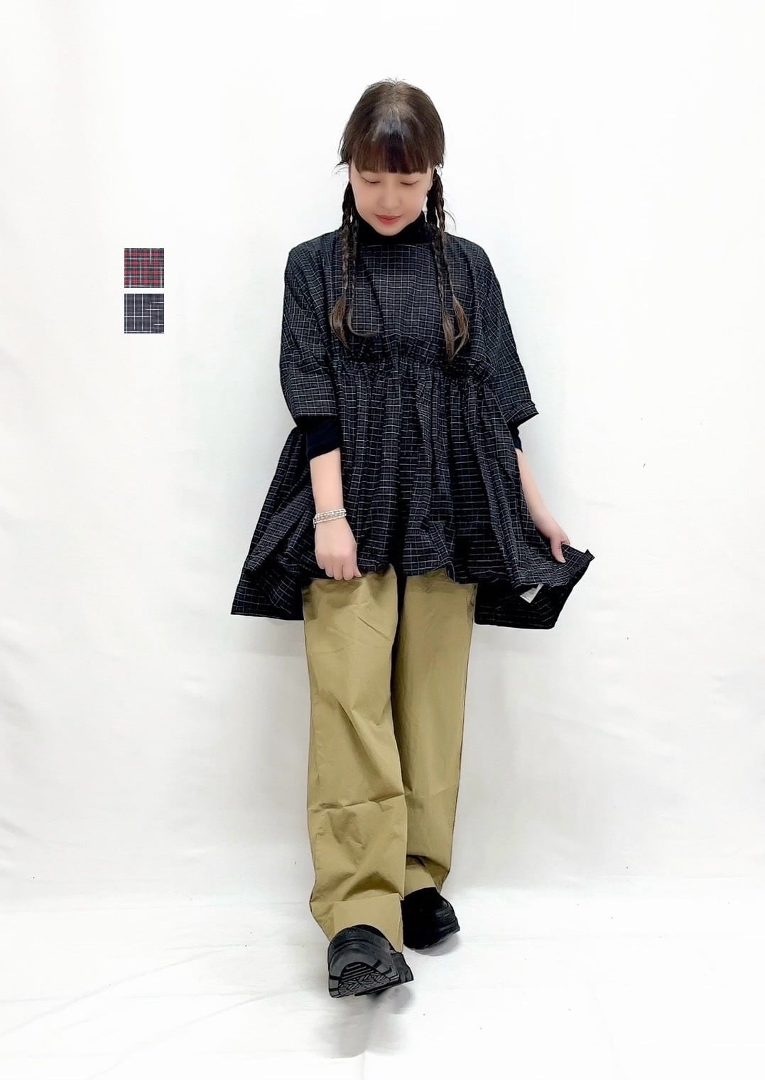 ネックフリルタックブラウス / g-618のご紹介です。細かなタックとフリルのデザインが、上品な印象を与えるブラウスです。軽やかでドレープのある生地には、肌触りの良さと動きやすさを考慮して作られています。さらりと着るだけで、カジュアルにもフォーマルにも活用できる万能な一枚です。