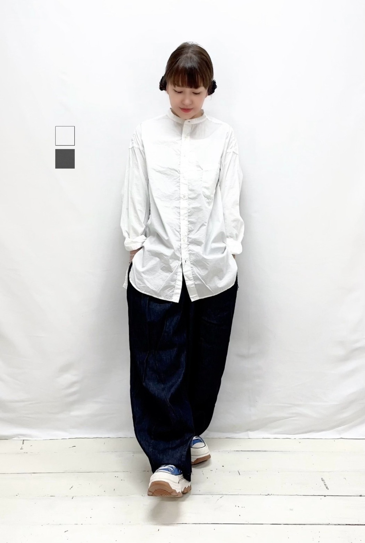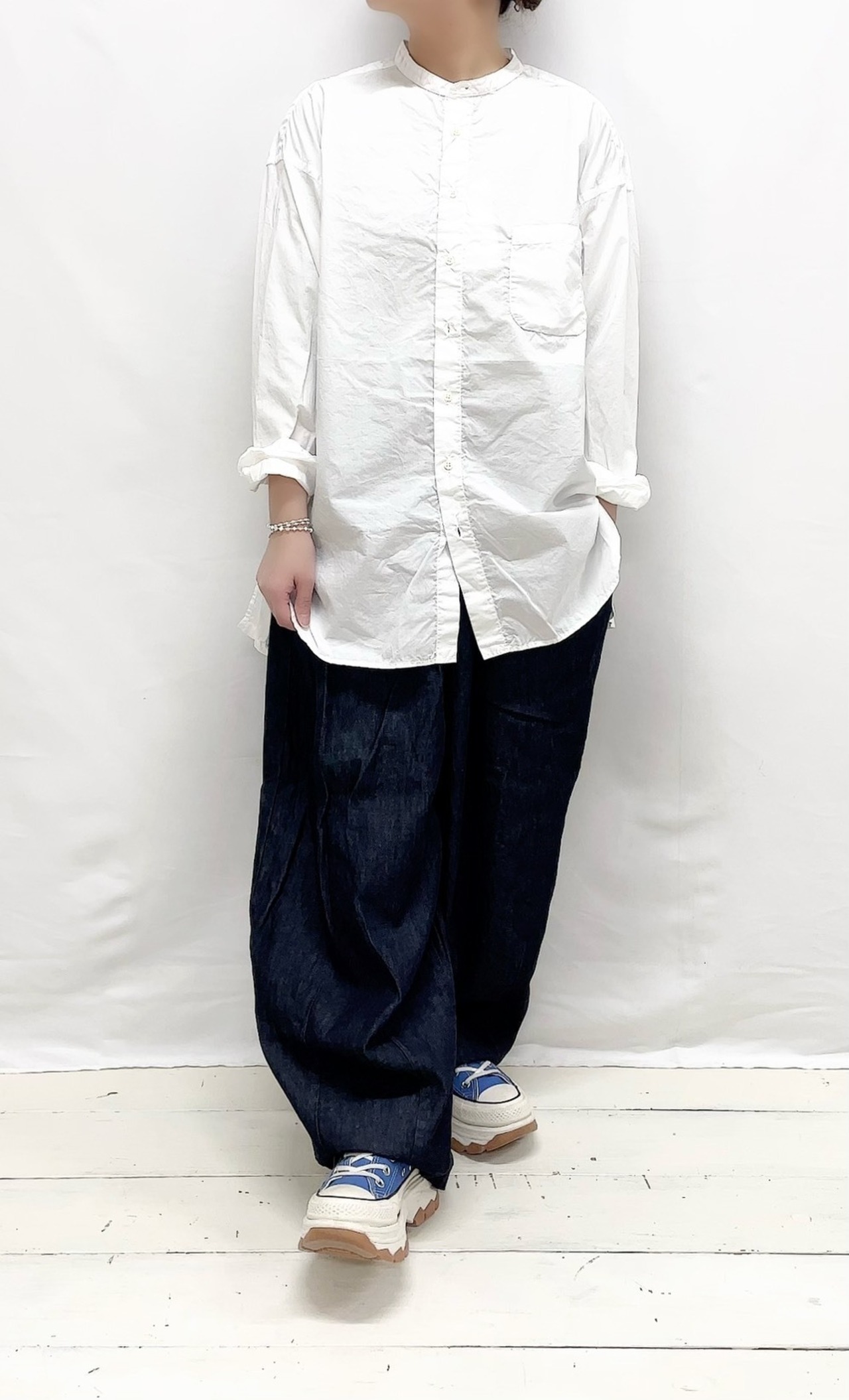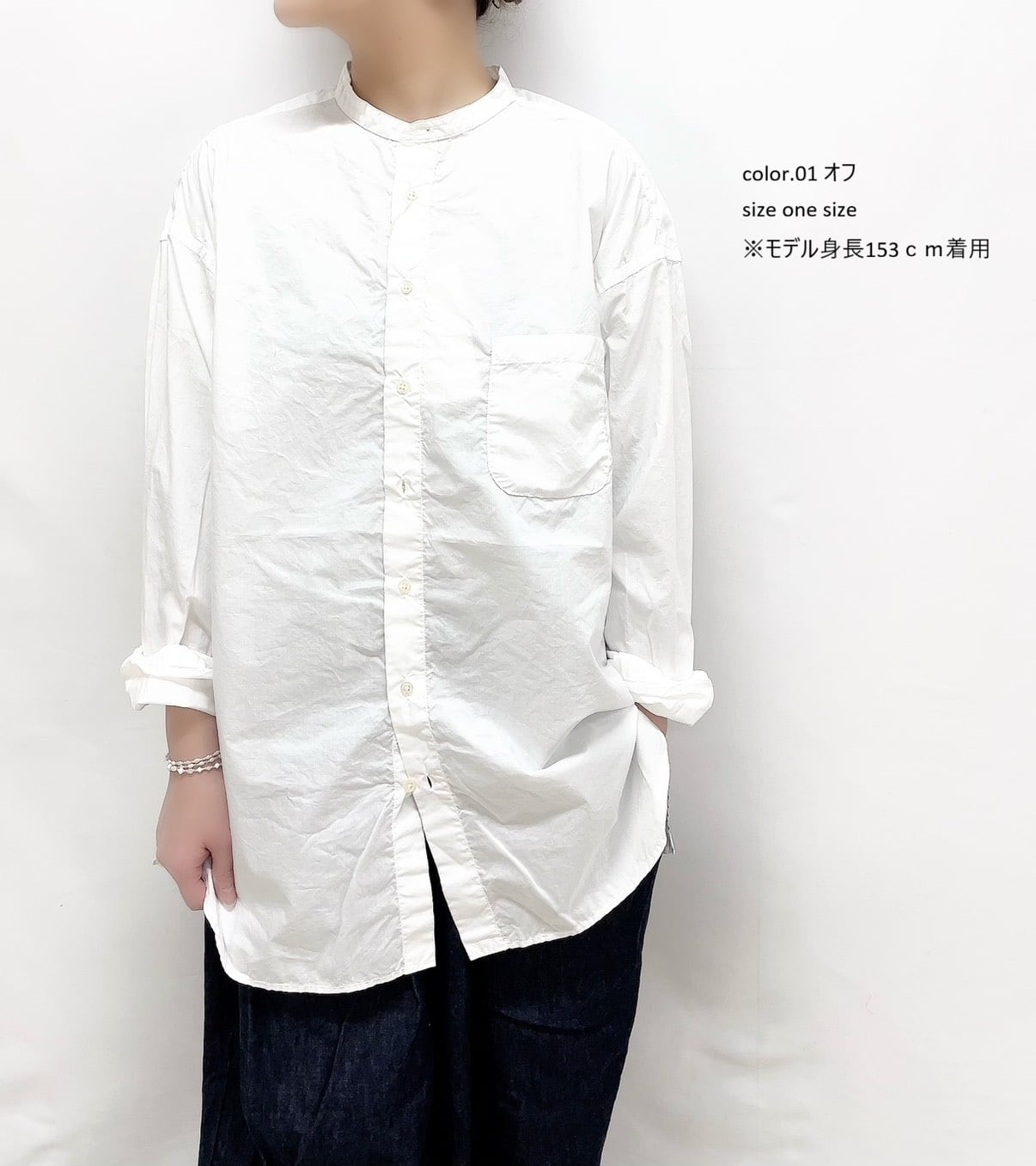 80/1タイプライタースタンドカラーオーバーサイズシャツ