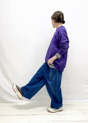 さらりとした綿素材が心地よく、肌に優しい着心地を実現しています。裾にはヒモが施され、自由にシルエットを調整することができるため、さまざまなスタイルを楽しめます。ゆったりとしたワイドシルエットは特にリラックス感があり、カジュアルなコーディネートにぴったりです。