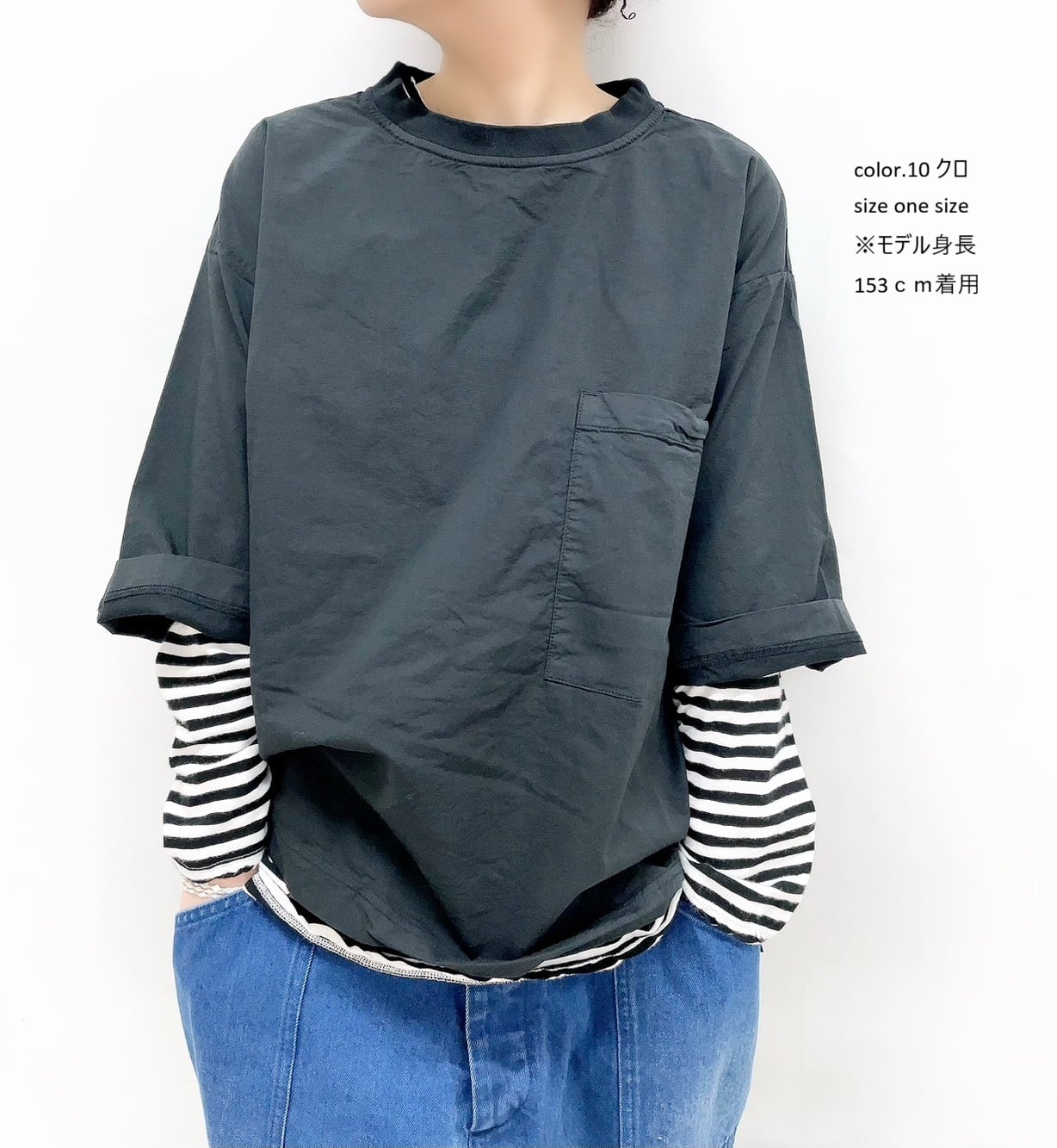 【prit】スウェットライク7分袖クルーネックビックポケットワイドプルオーバー / P91633