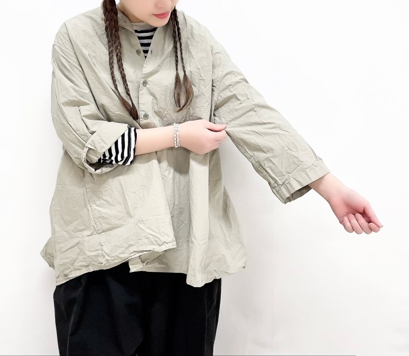 シボ感が特徴です。前身頃はシャツスリーブ、