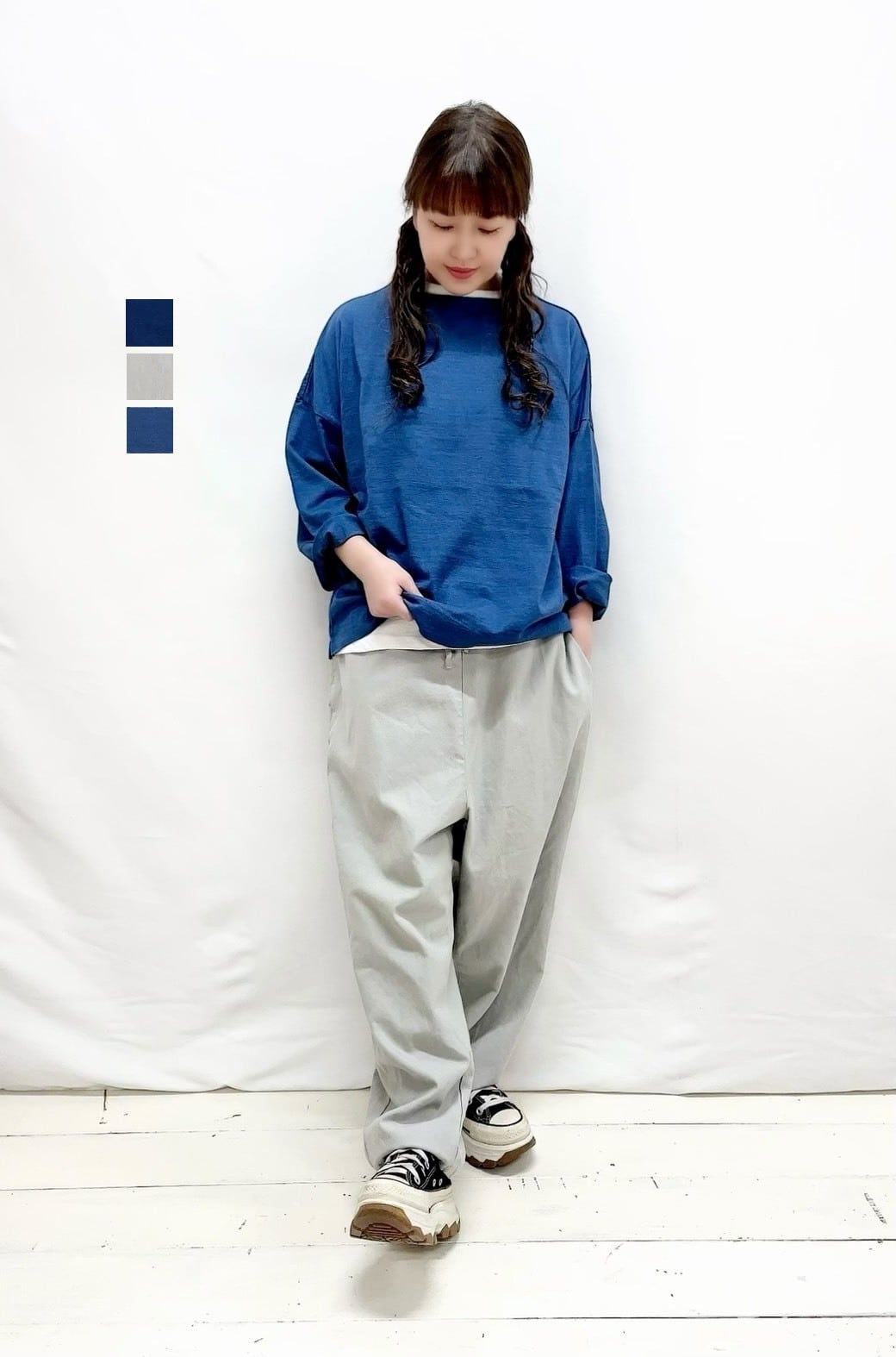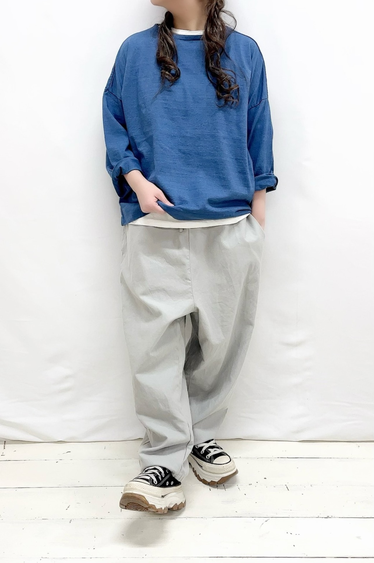 5分袖裾ヒモワイドプルオーバーのご紹介です。