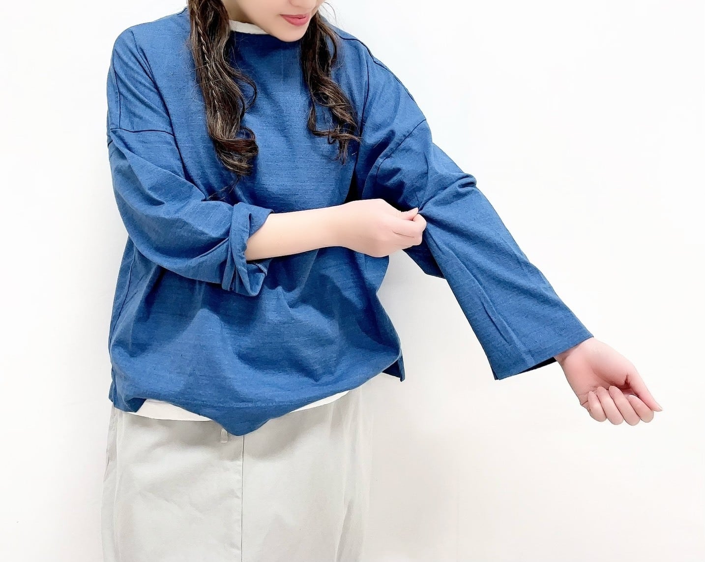 5分袖裾ヒモワイドプルオーバー