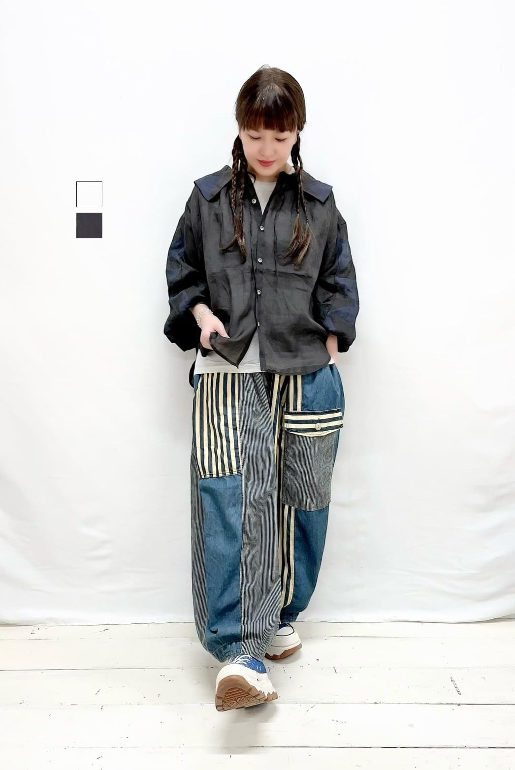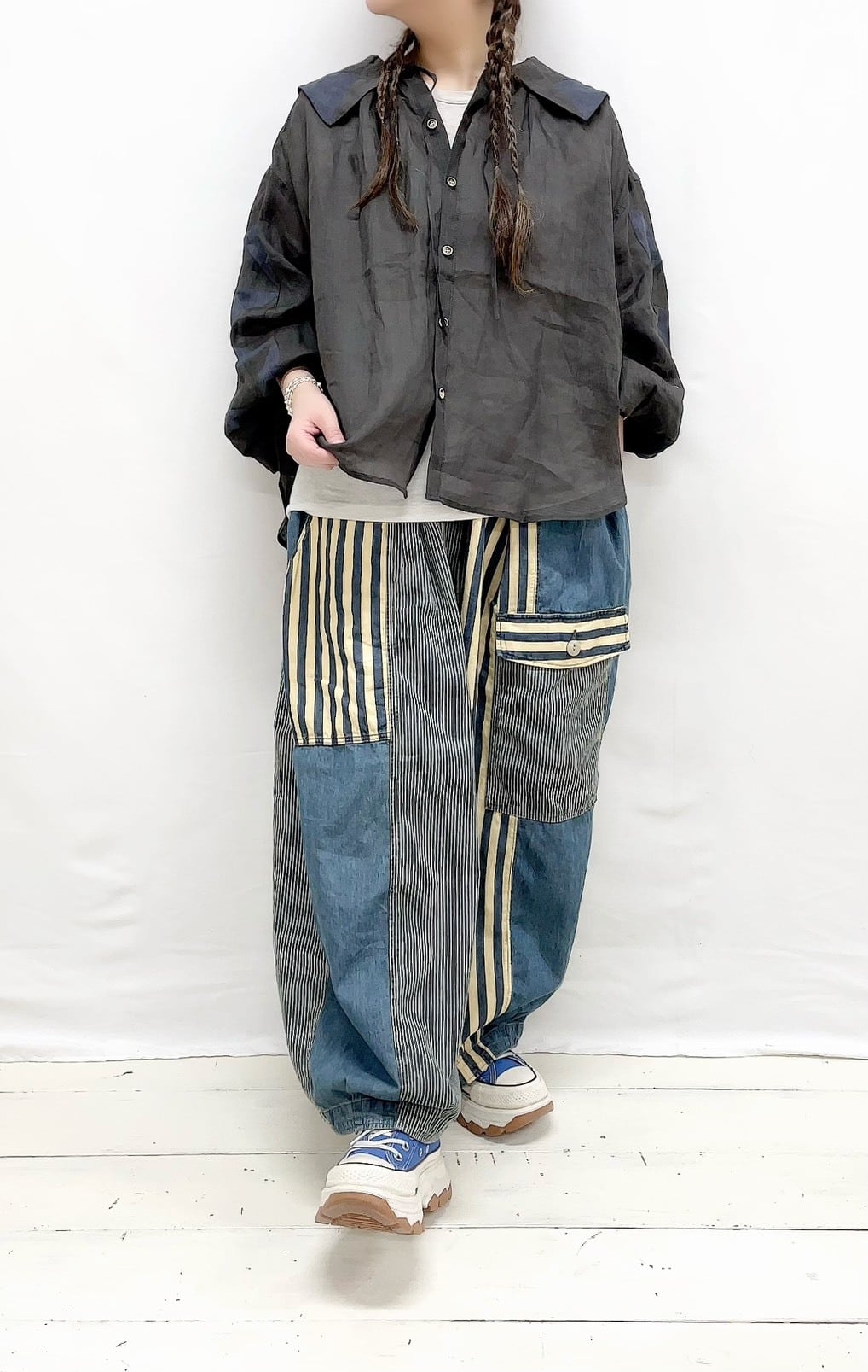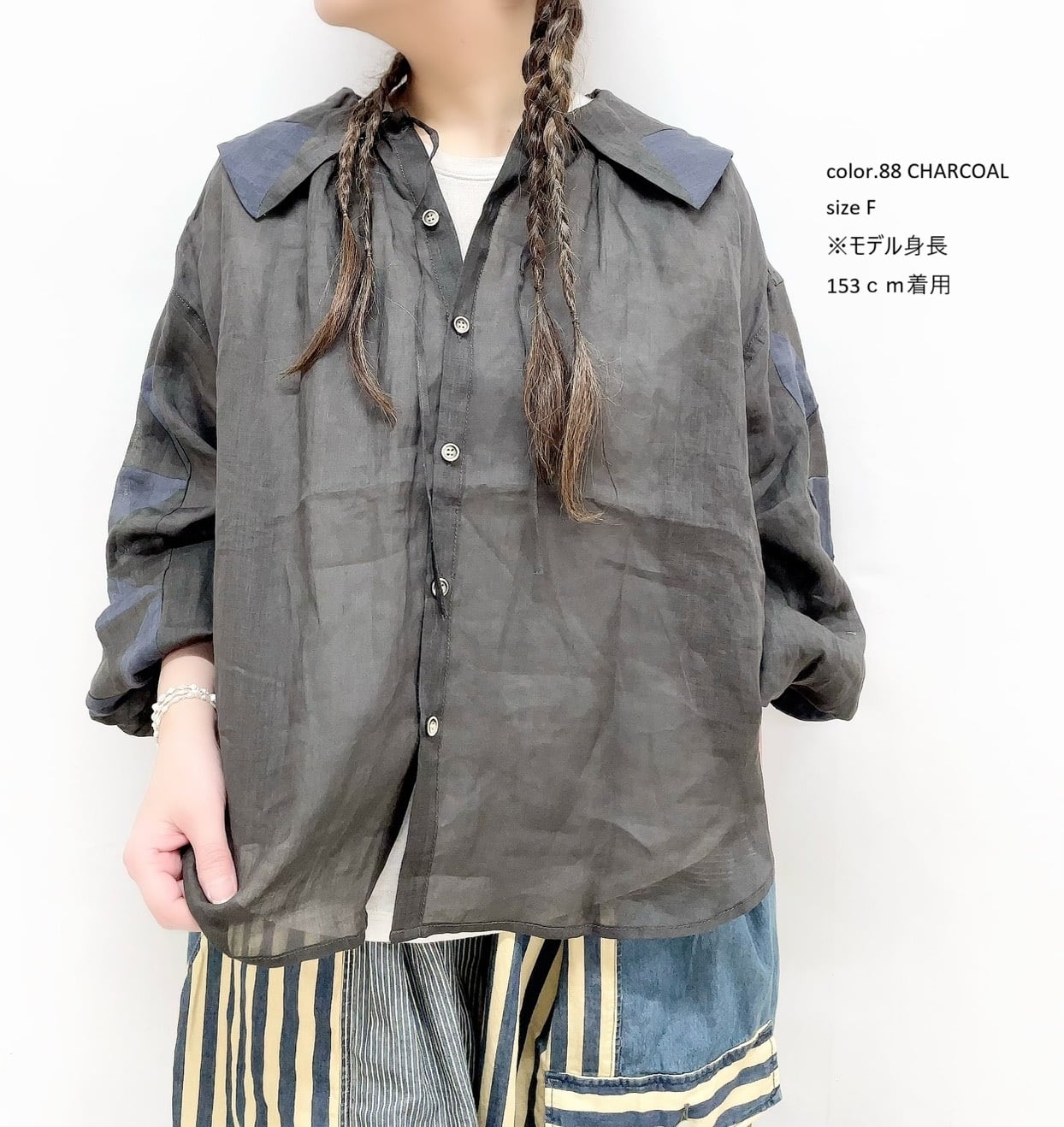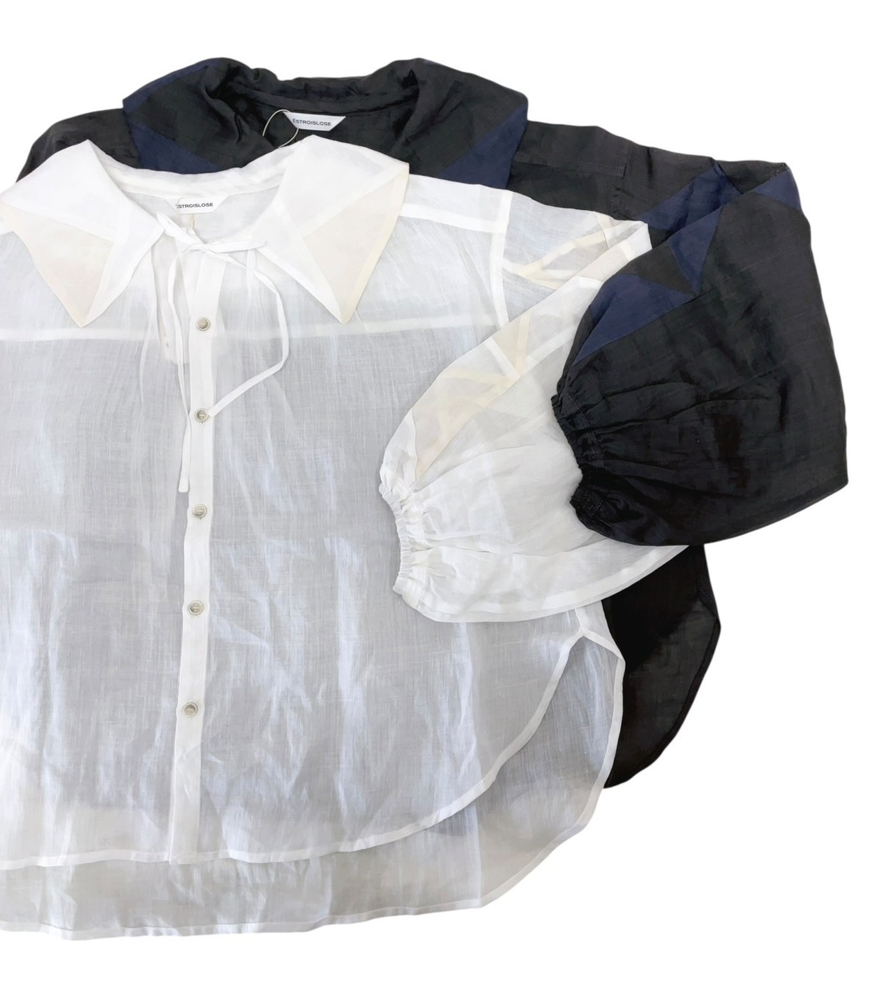 透け感のあるラミー素材です。ブラウスは