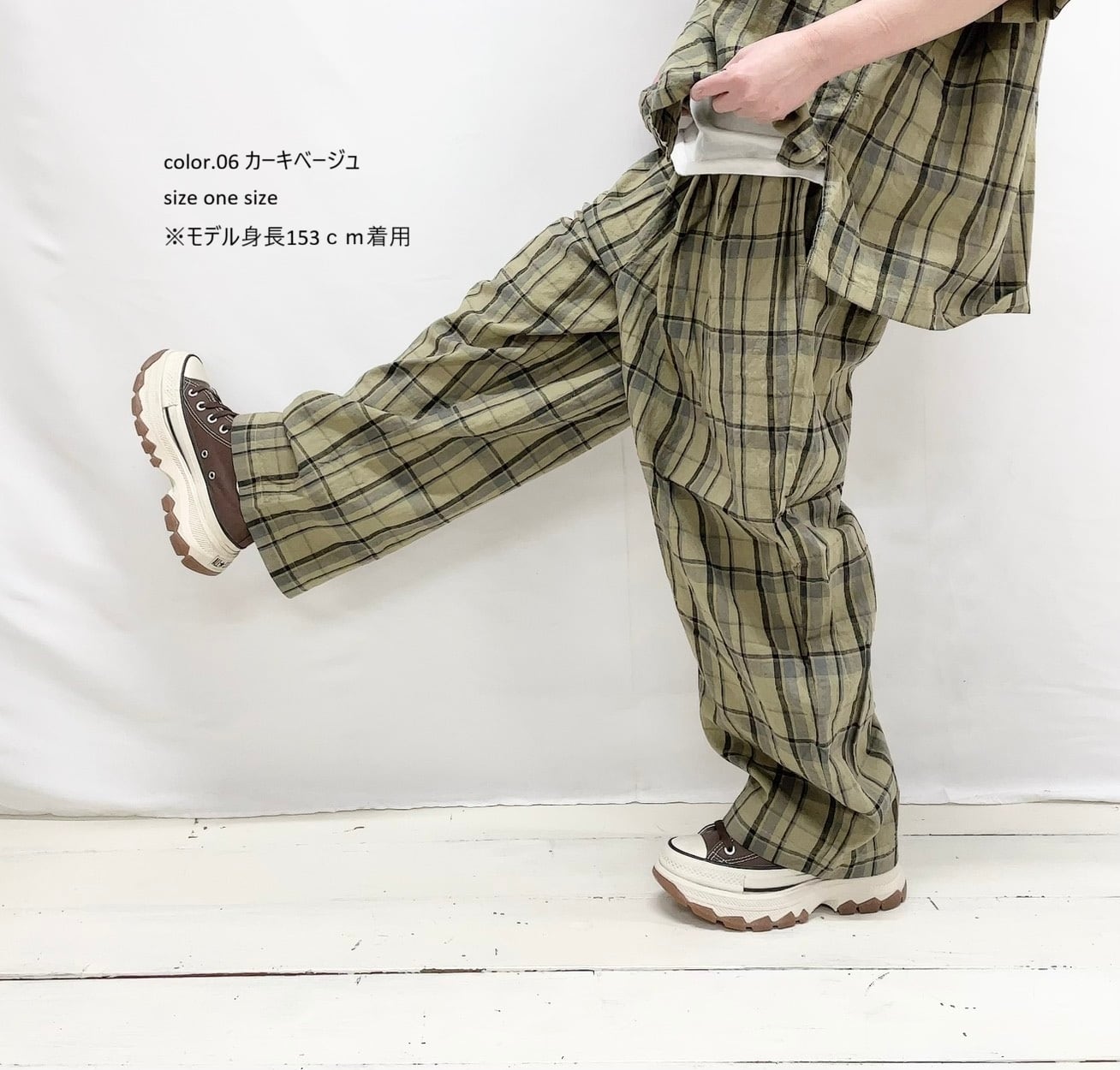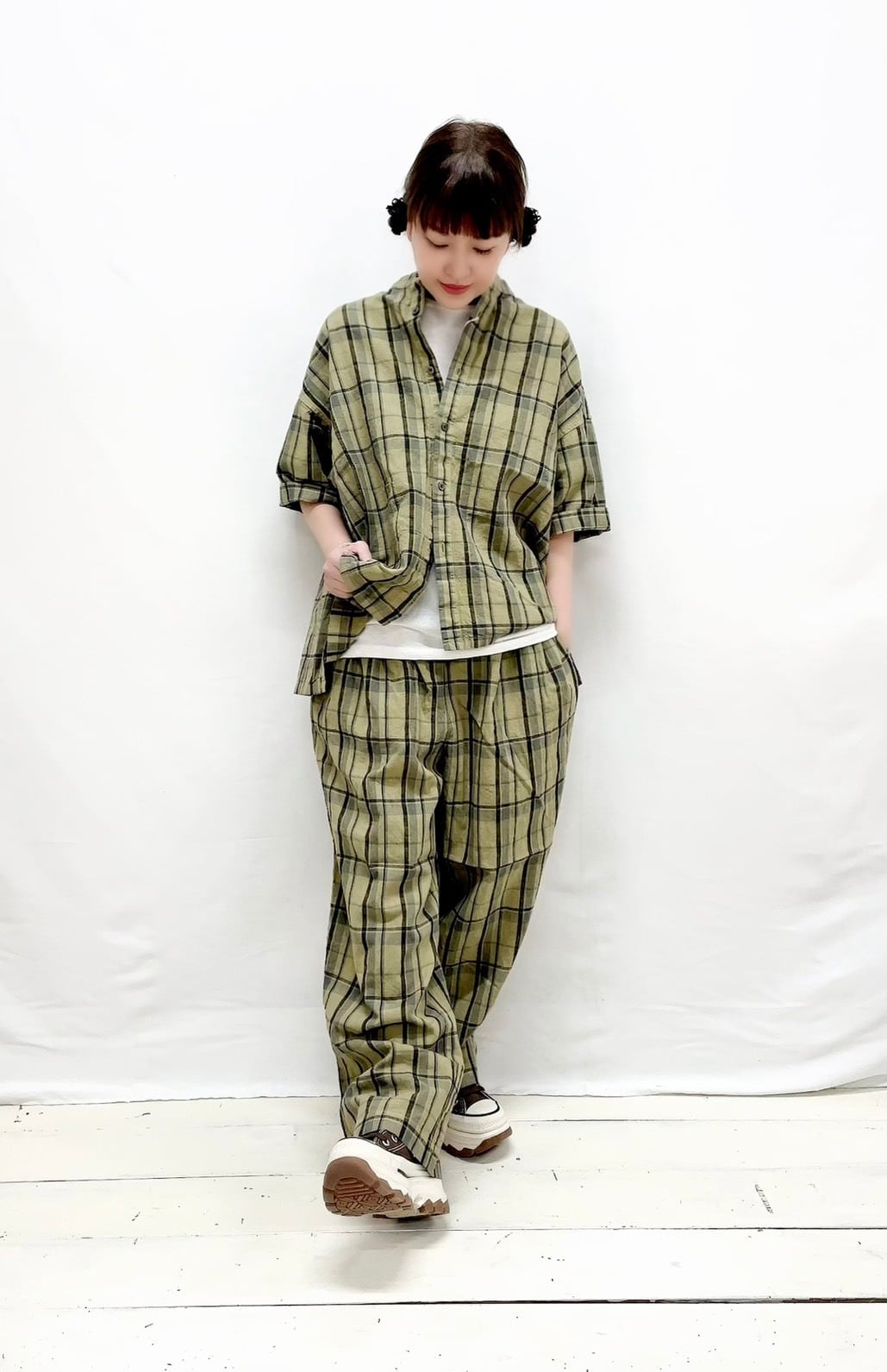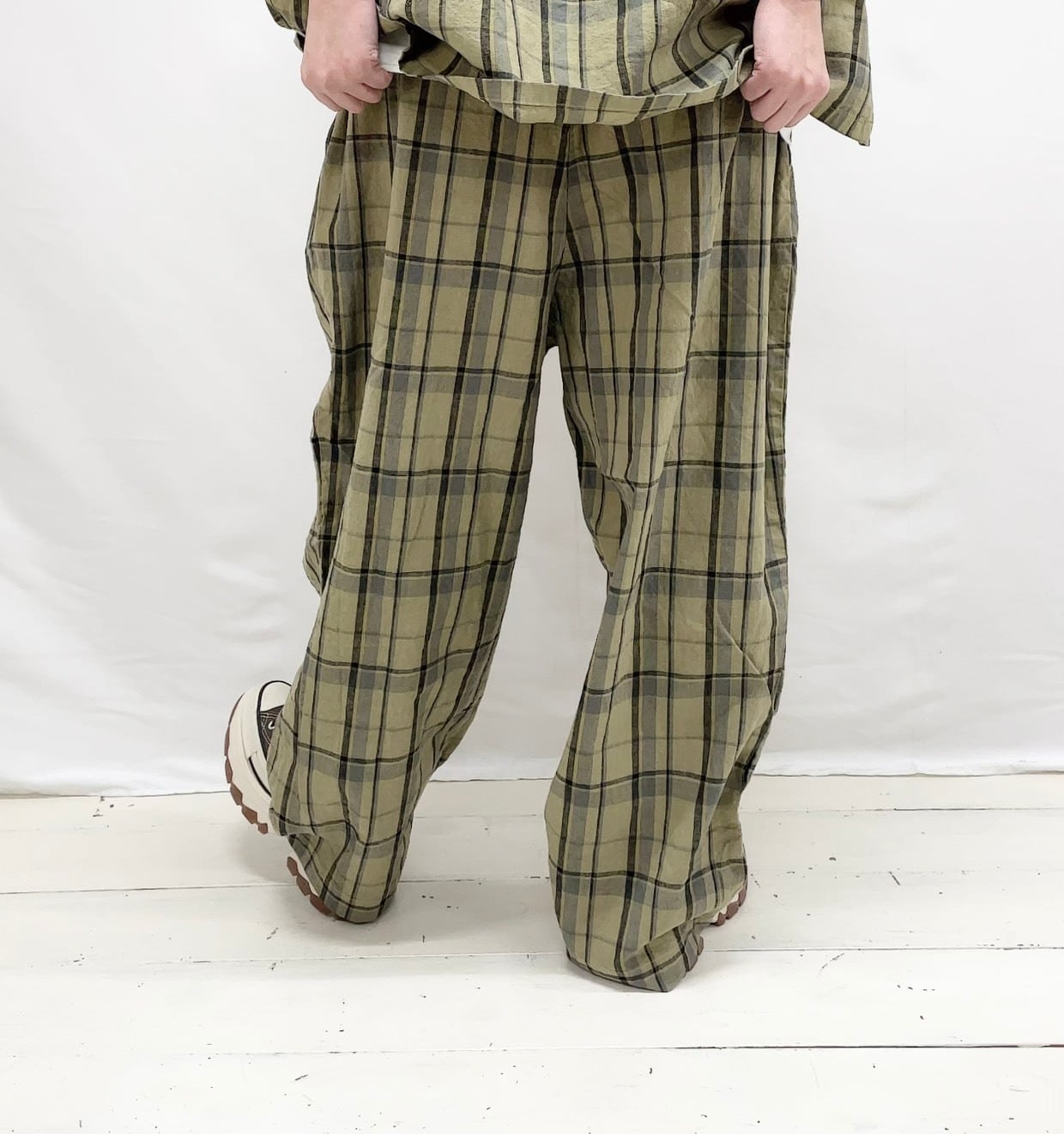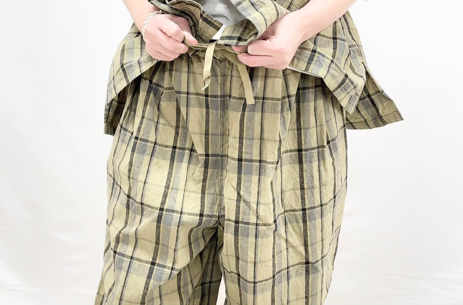 【prit】16/1リネンコットンチェックタックイージーパンツ / P71609