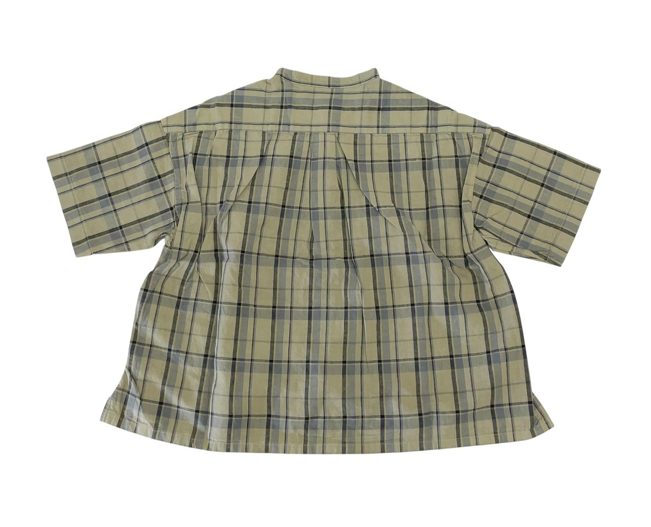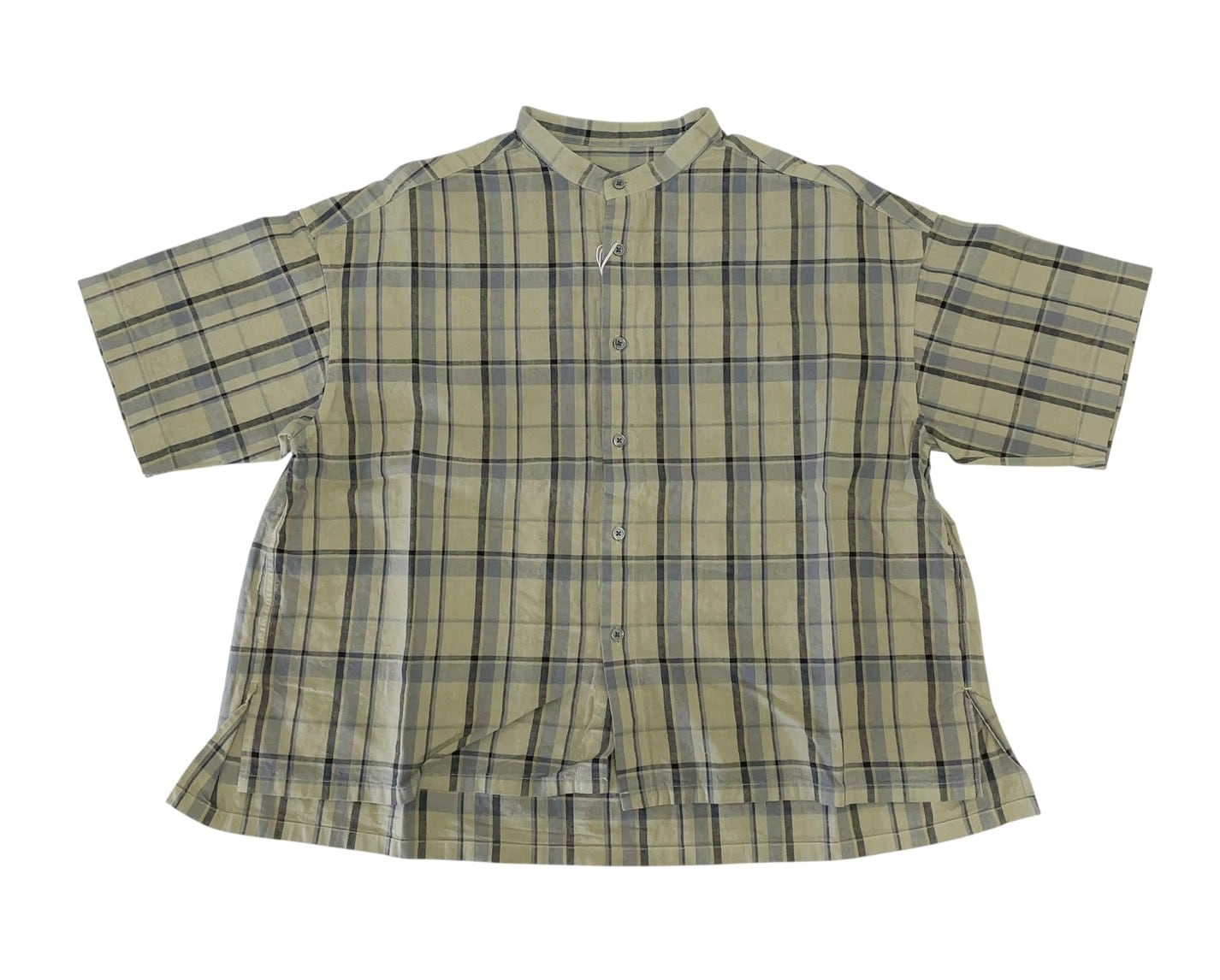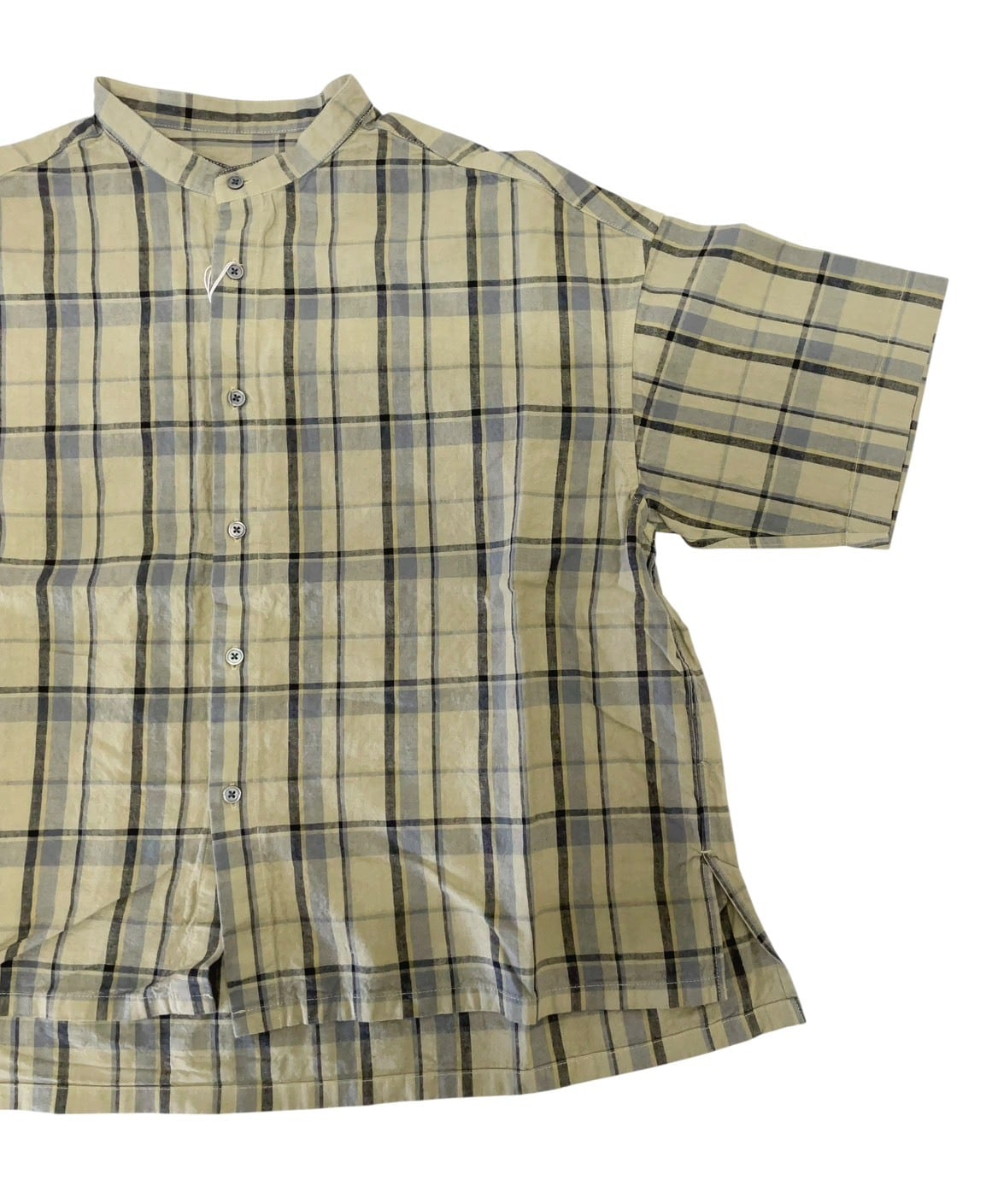 【prit】16/1リネンコットンチェック5分袖スタンドカラービックシャツ / P81607