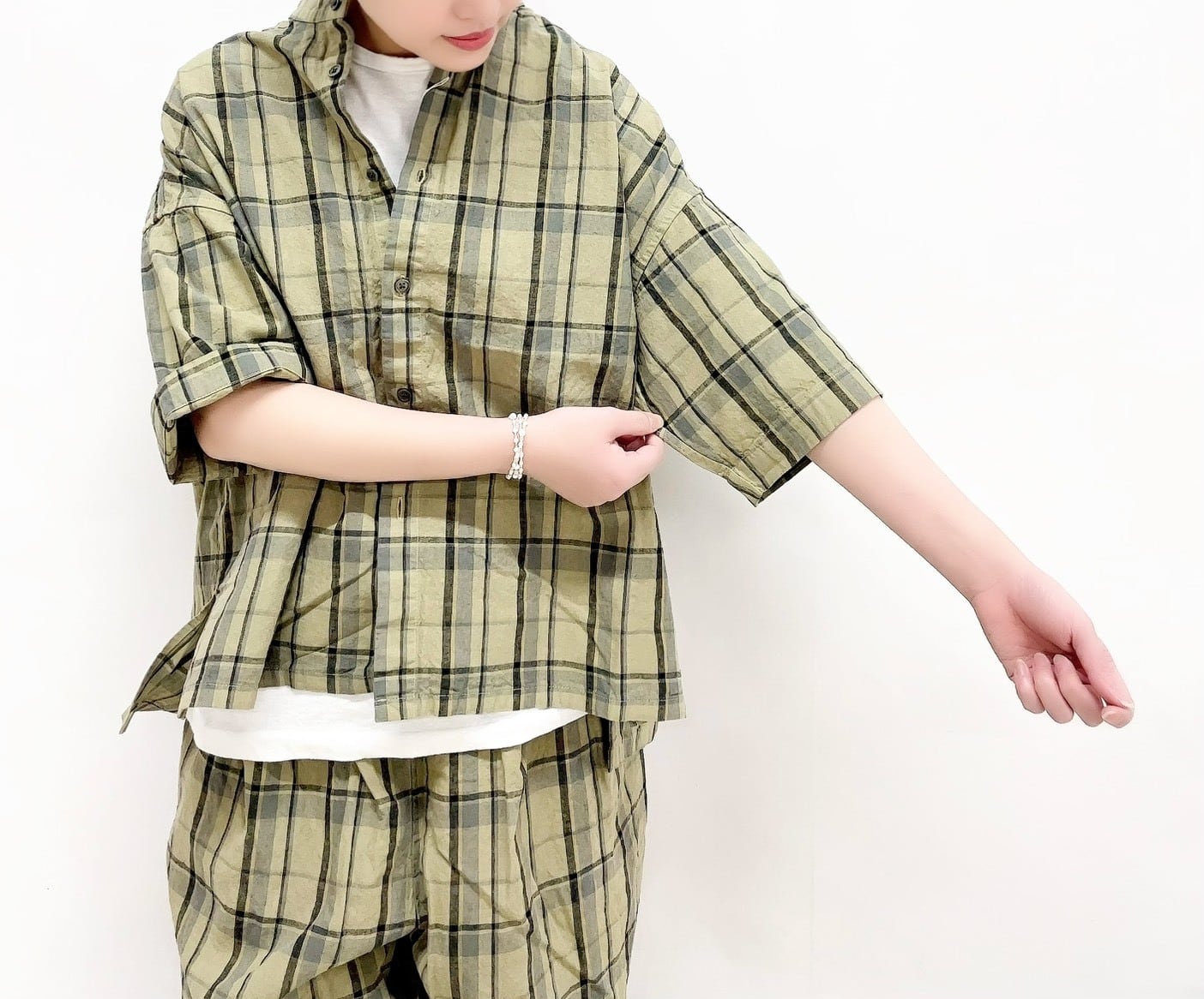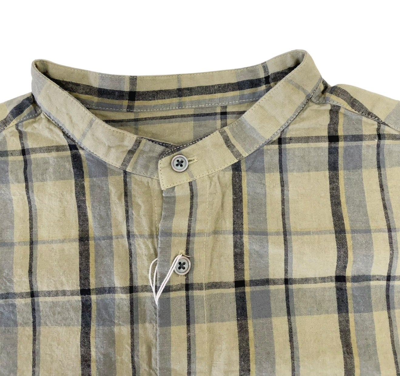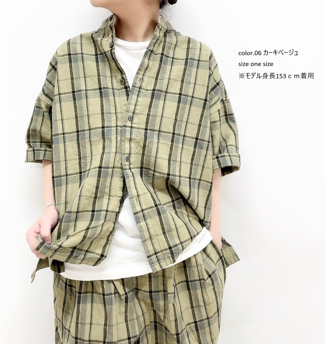 【prit】16/1リネンコットンチェック5分袖スタンドカラービックシャツ / P81607