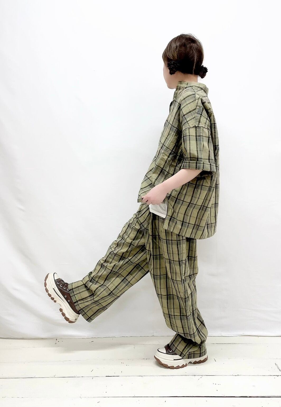 合わせやすいチェック柄で、幅広く