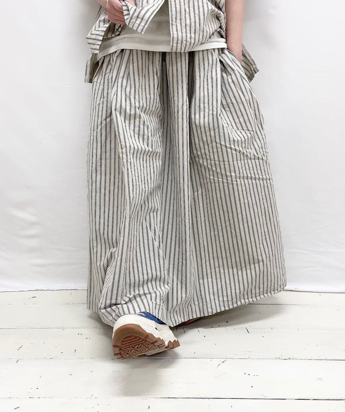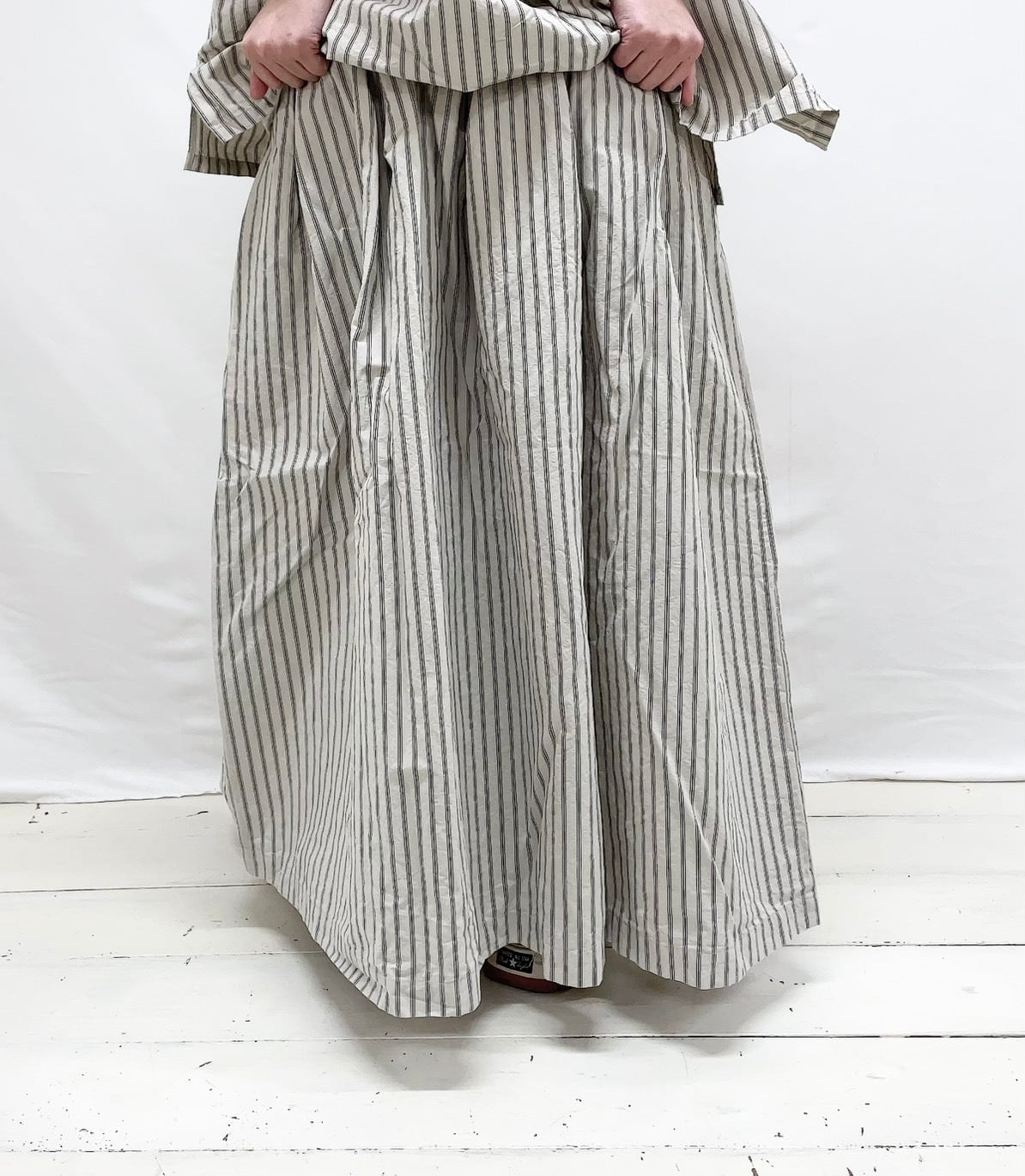 コットンリネンウェザー近江晒加工タックスカート