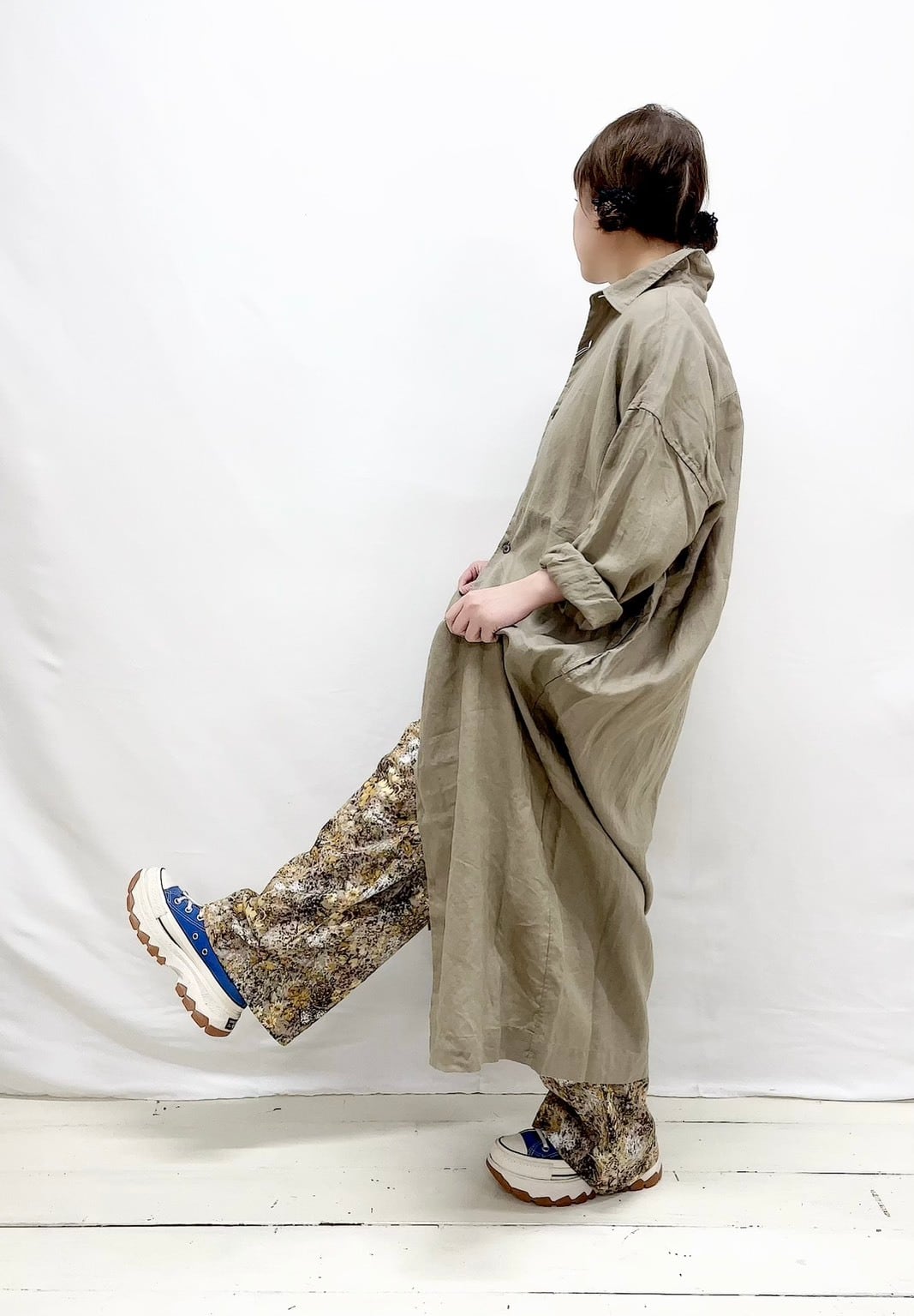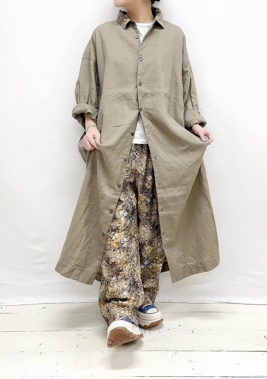さらりとした綿素材が心地よく、肌に優しい着心地を実現しています。裾にはヒモが施され、自由にシルエットを調整することができるため、さまざまなスタイルを楽しめます。ゆったりとしたワイドシルエットは特にリラックス感があり、カジュアルなコーディネートにぴったりです。