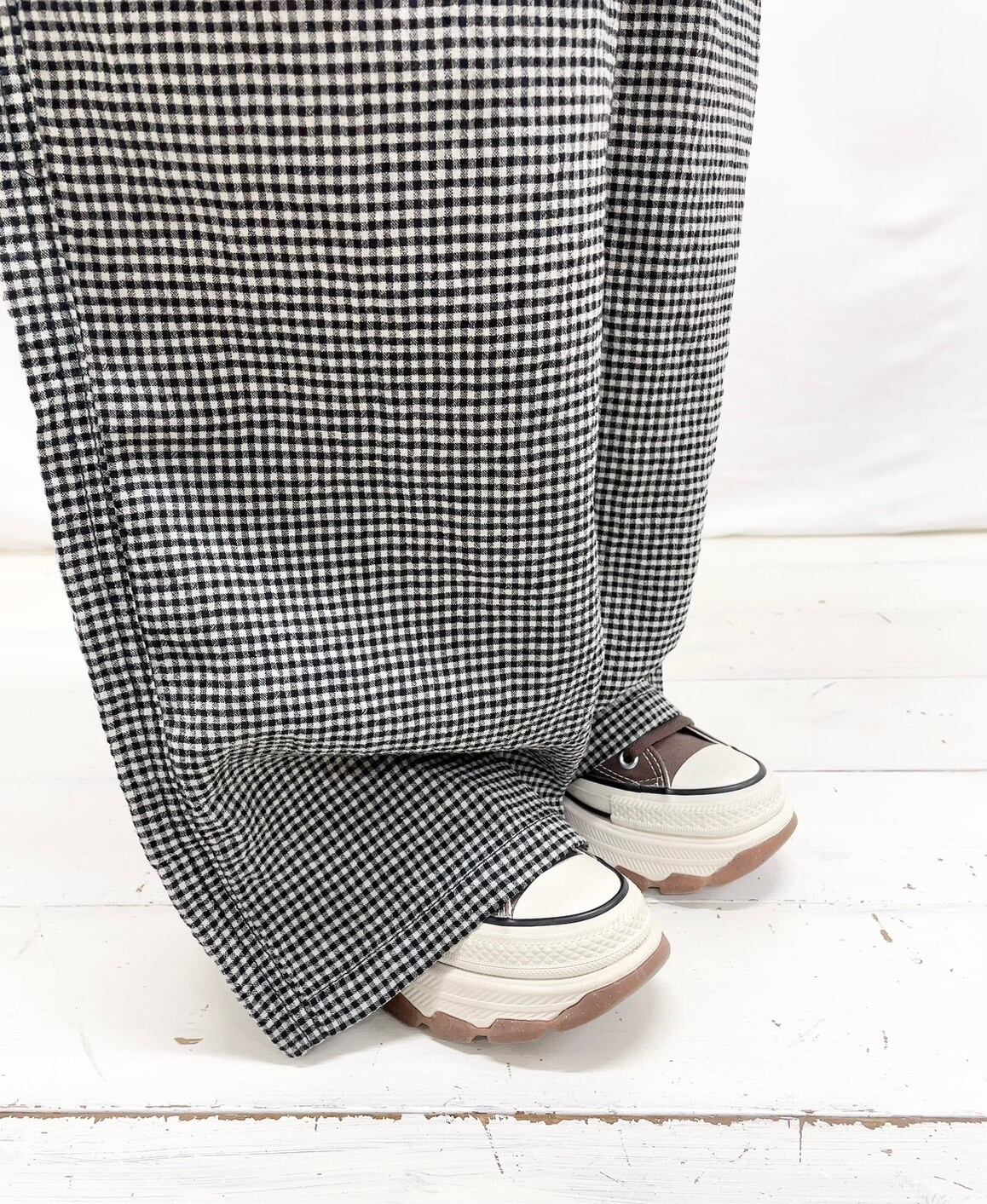 コットンリネンチェックデフォルメエペパンツ