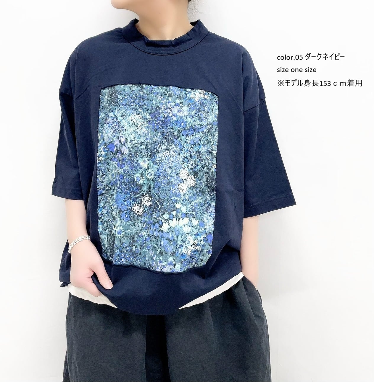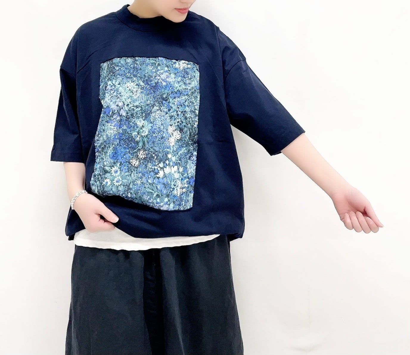 ガーデンプリント5分袖フレームTシャツ