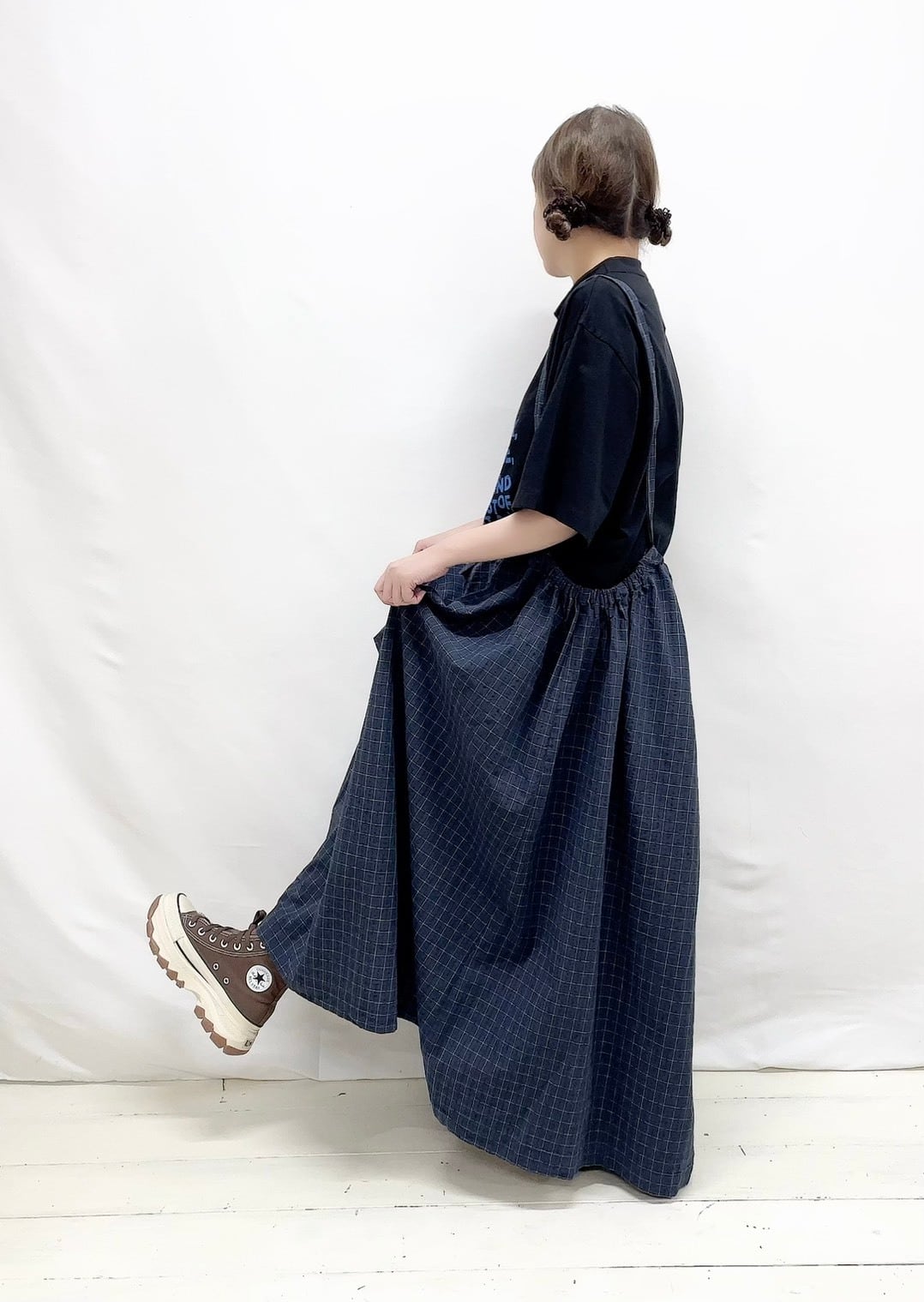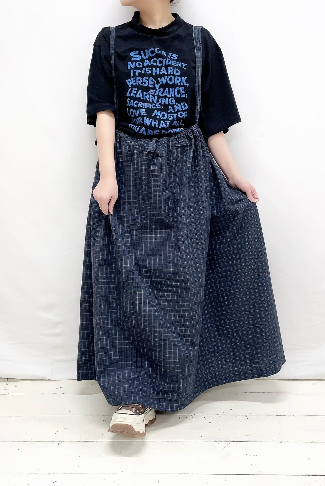 グレンチェック2wayワンピース(ロングスカート)