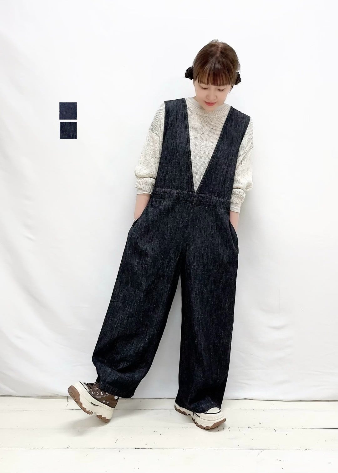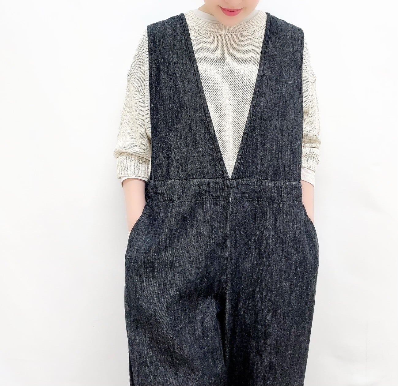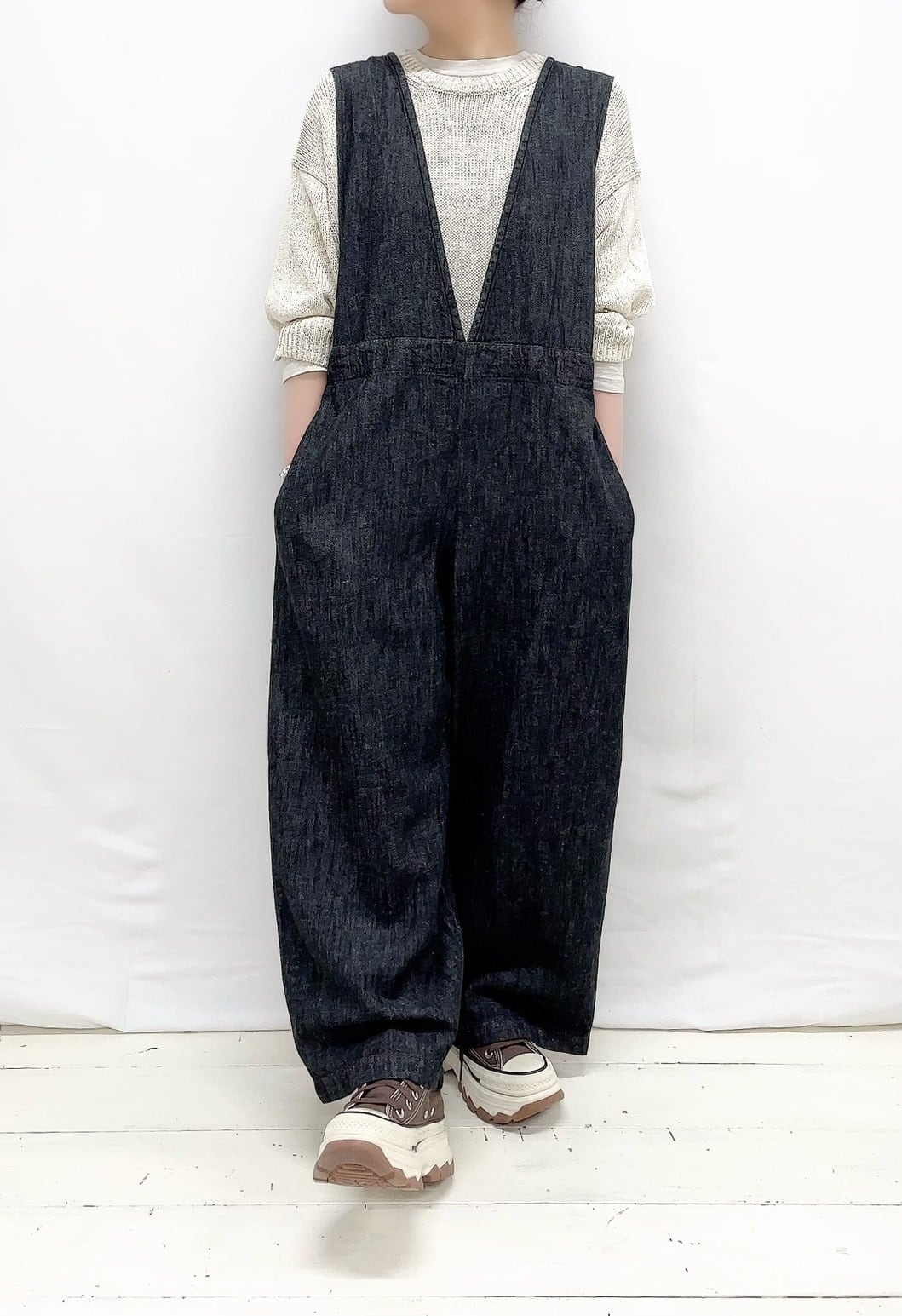 コットンリネンデニムサロペット