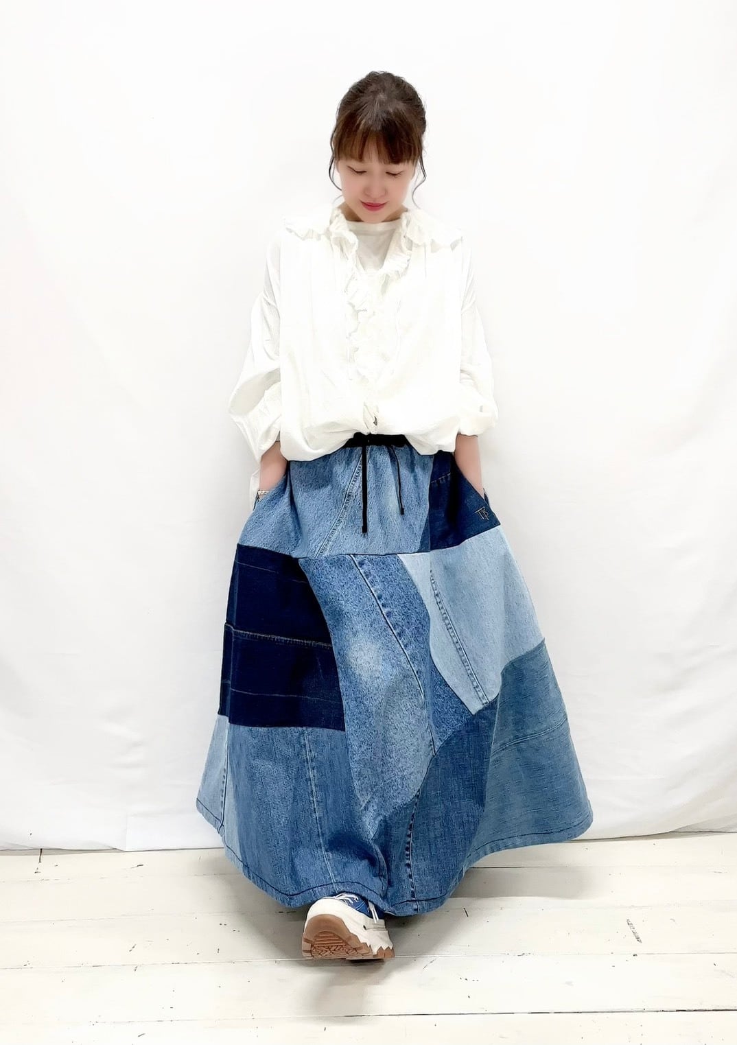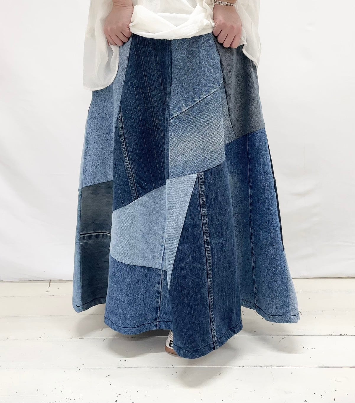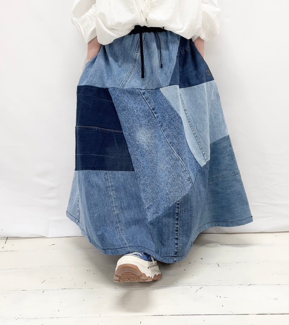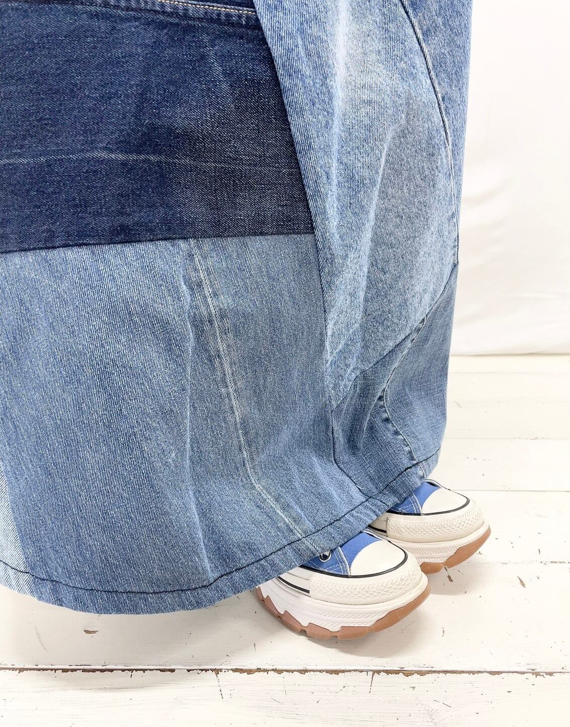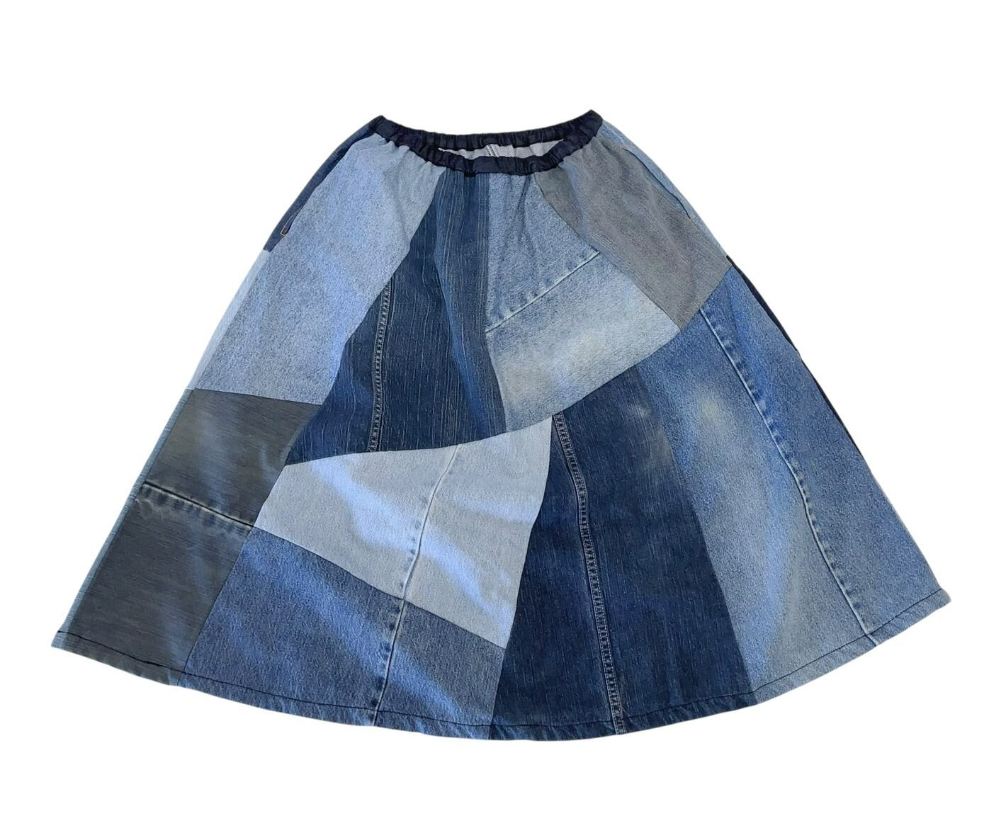 デニムMIXフレアランダムパッチSK