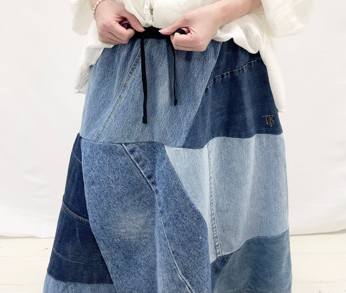 【TIGRE BROCANTE】デニムMIXフレアランダムパッチSK / TR131-SK87K
