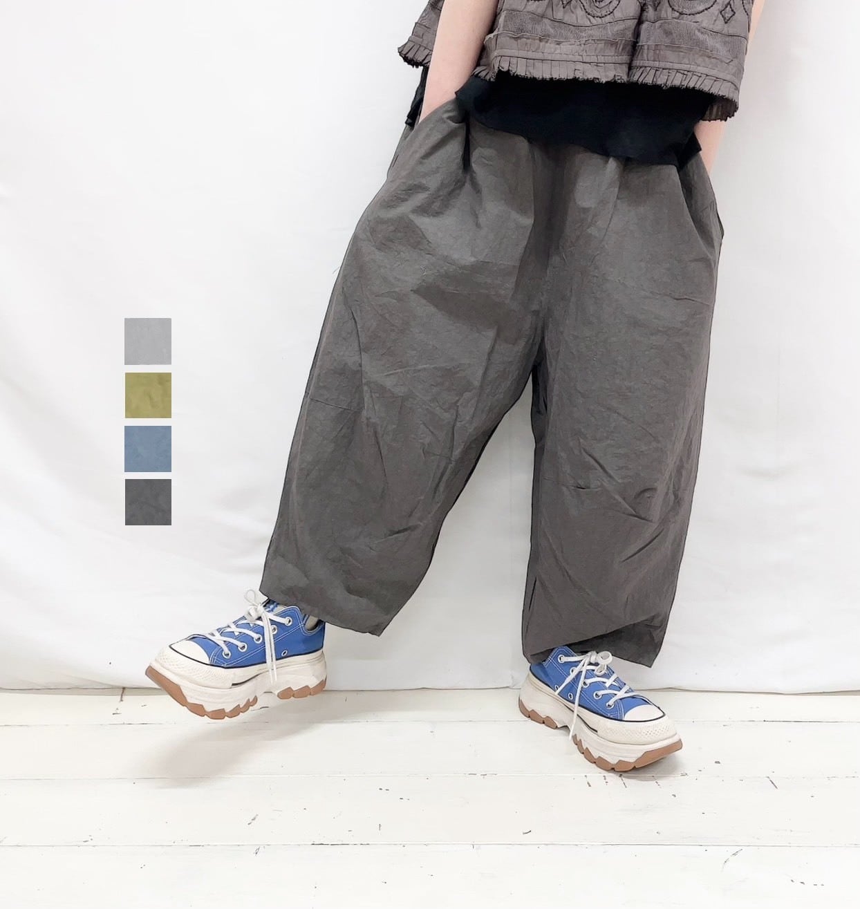 【tumugu】コットンリネンタイプライターファナージュティンカーパンツ / TB26127