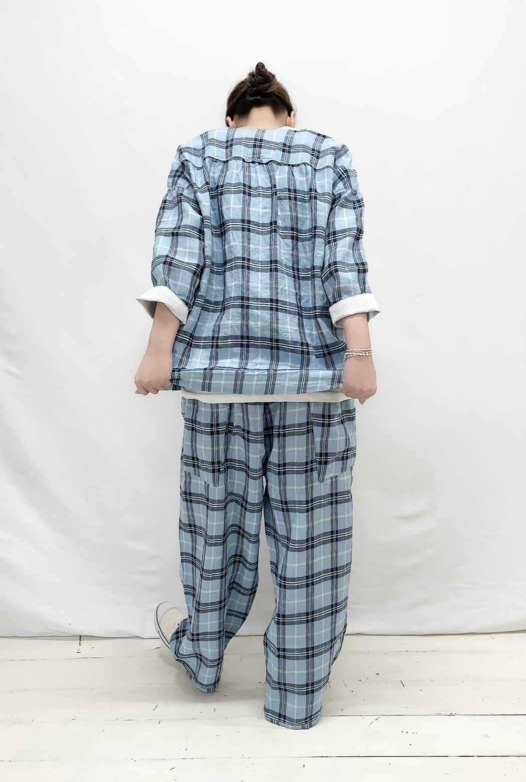 今年の新色は水色タータン。爽やかな水色
