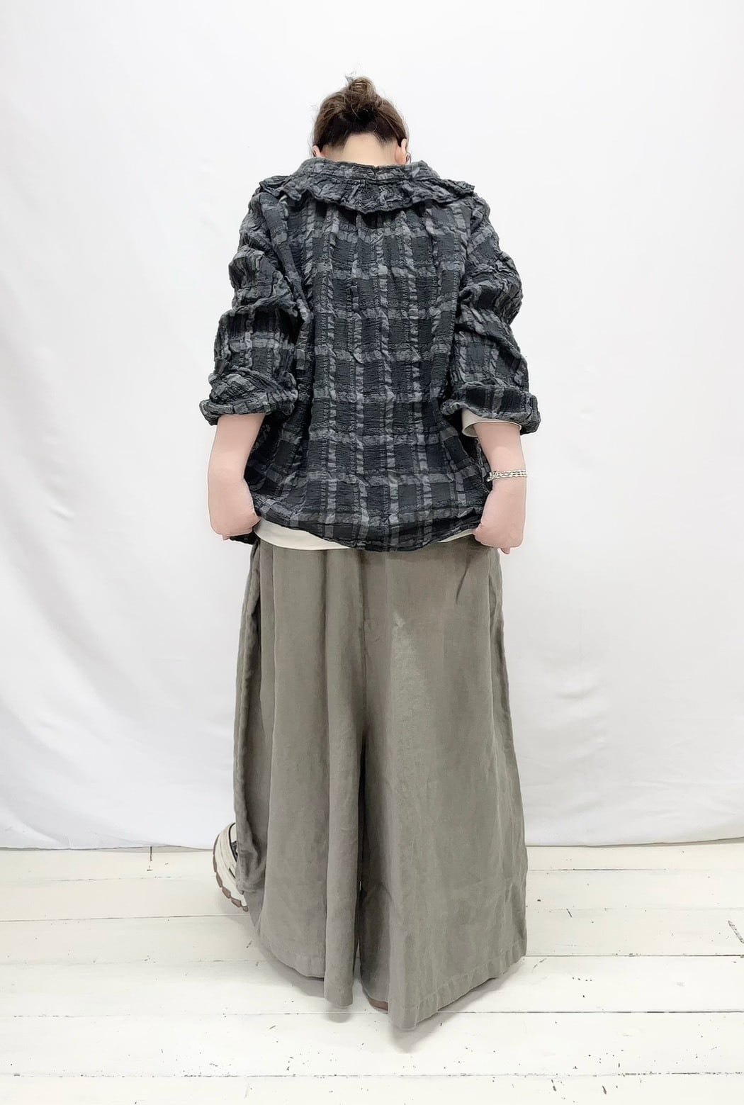 デザインが特徴的なブラウス。ゆとりを