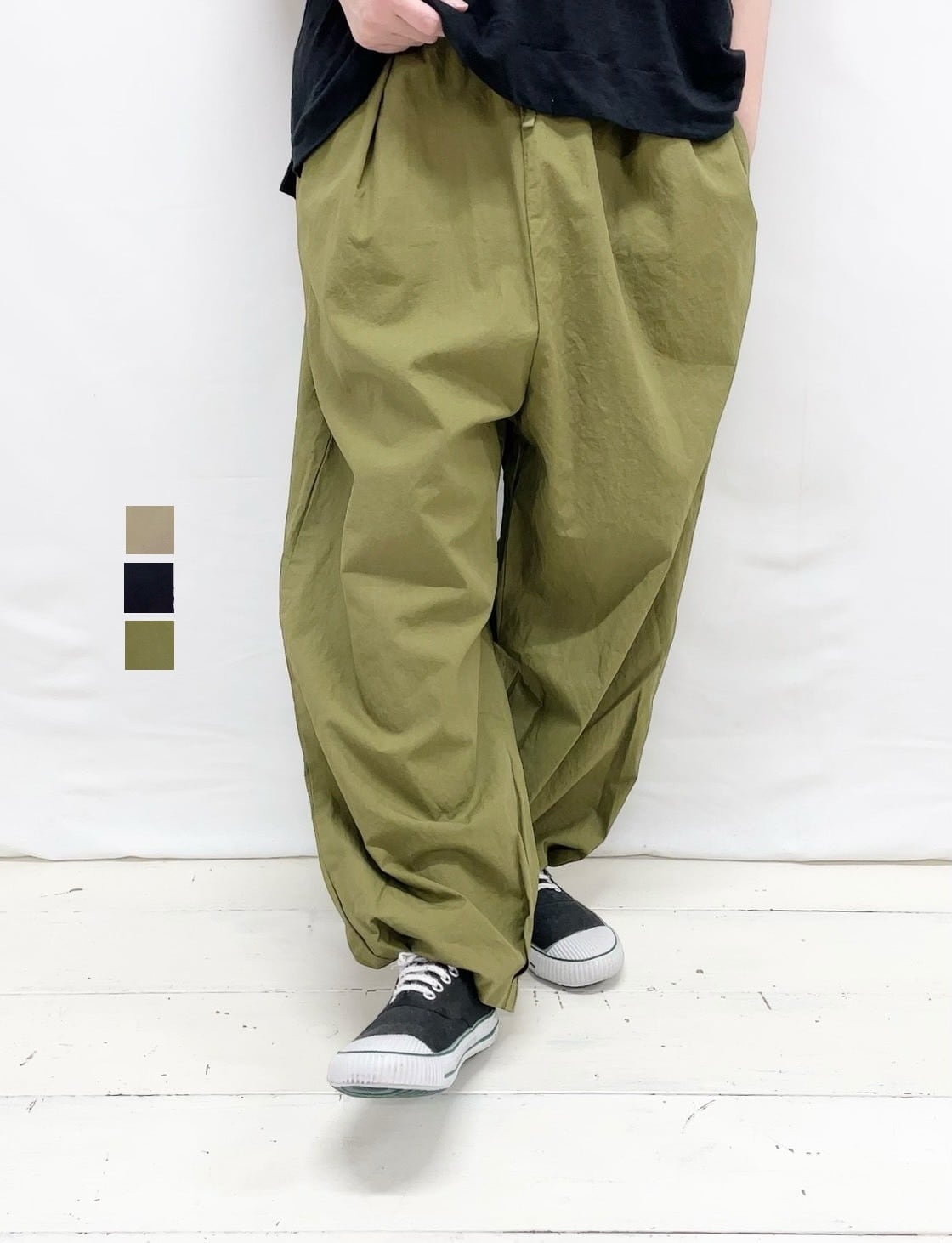 50/1強撚ダンプ裾タックバギーパンツ