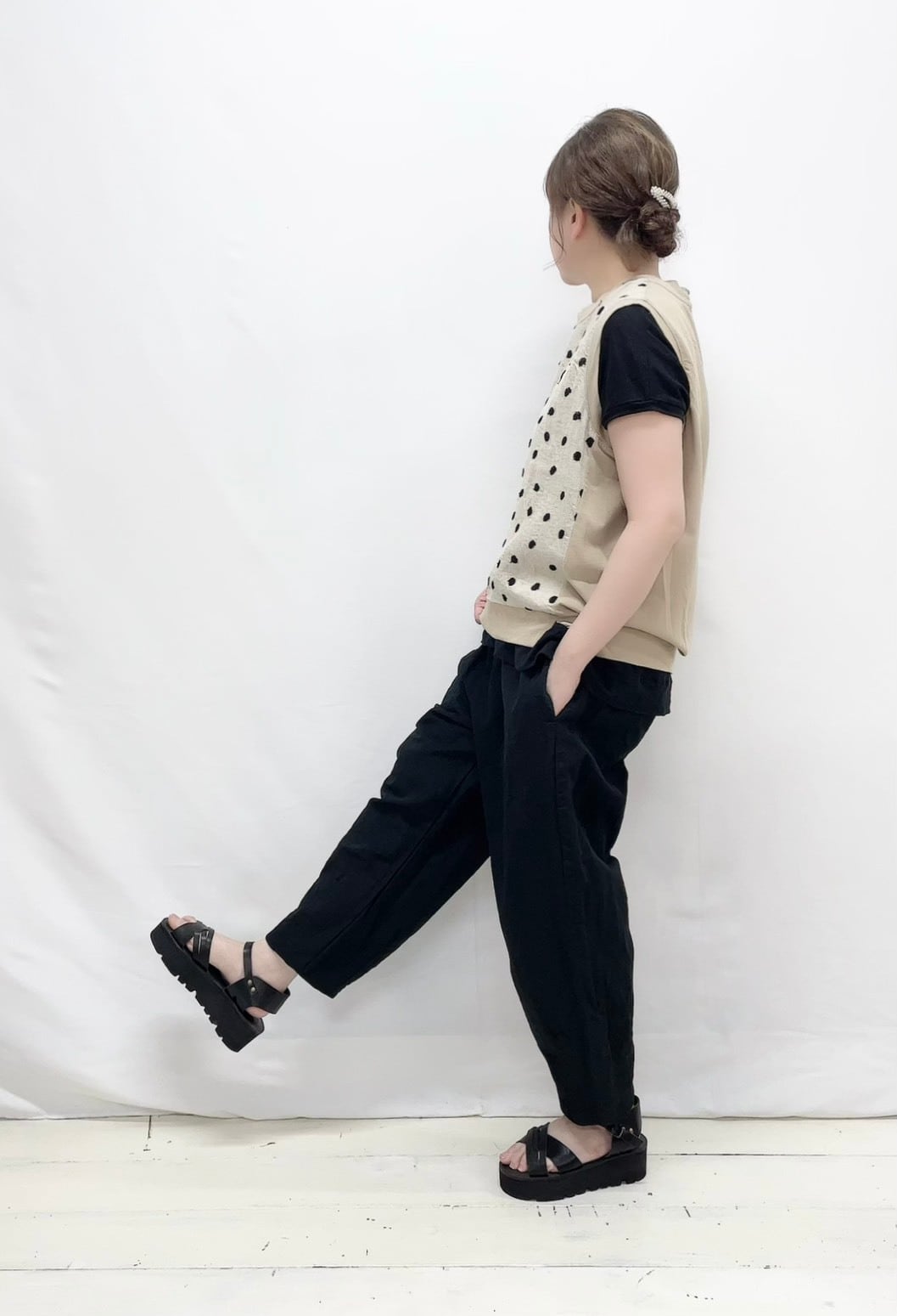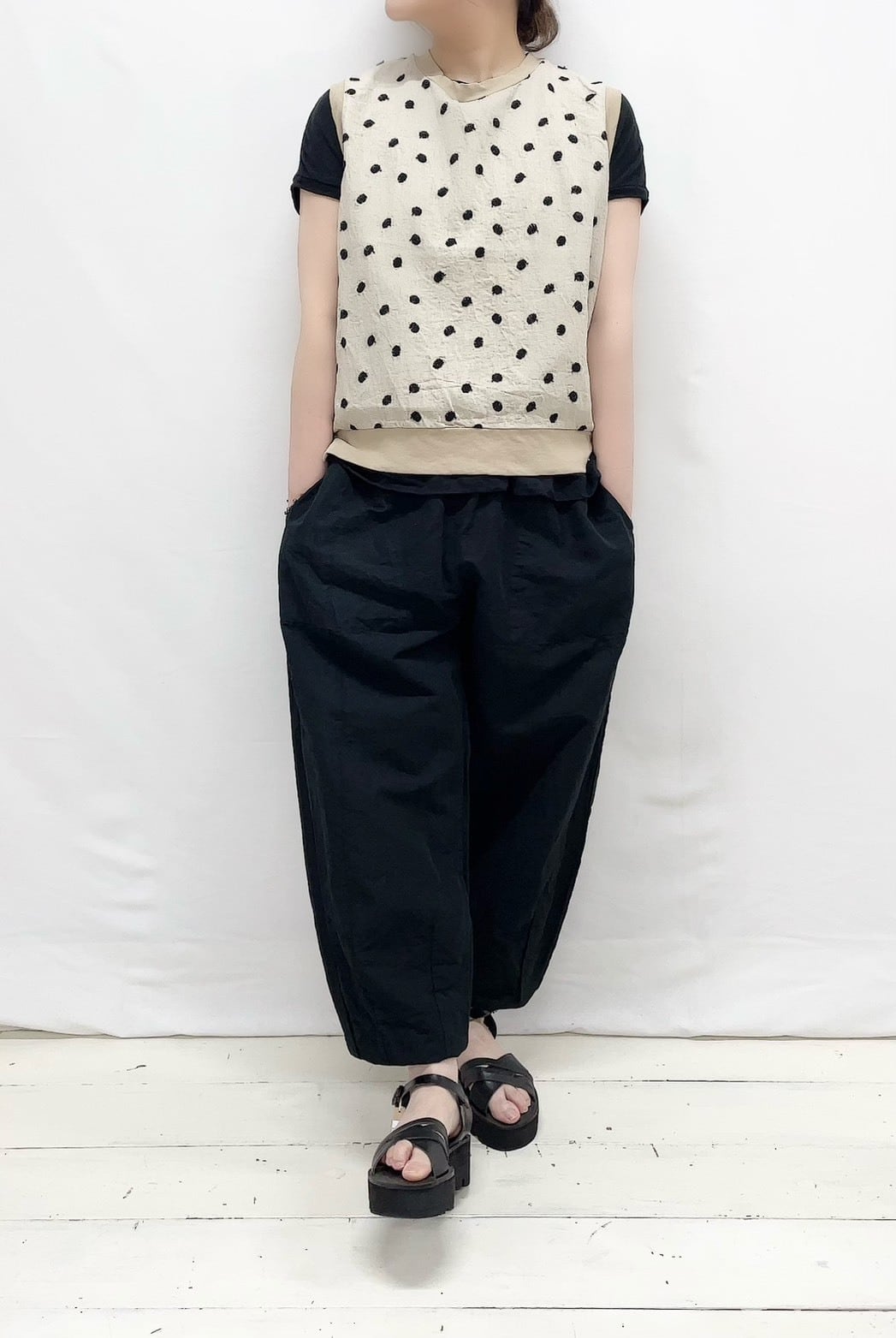 【prit】40/1強撚天竺×20/1ドット刺繍切替プルオーバーベスト / P91617