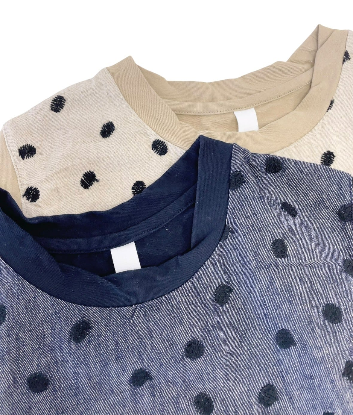 ドット刺繍が施された切替デザインが特徴的