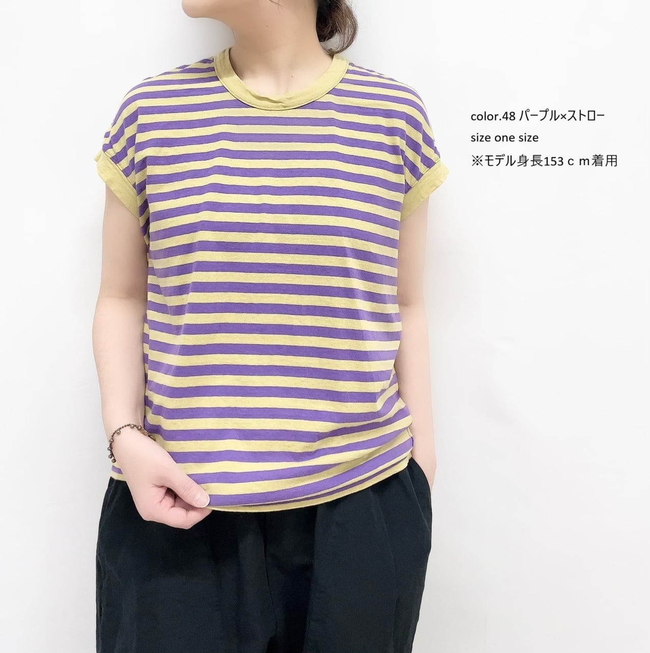 30/1リサイクル天竺カラーボーダーフレンチスリーブ