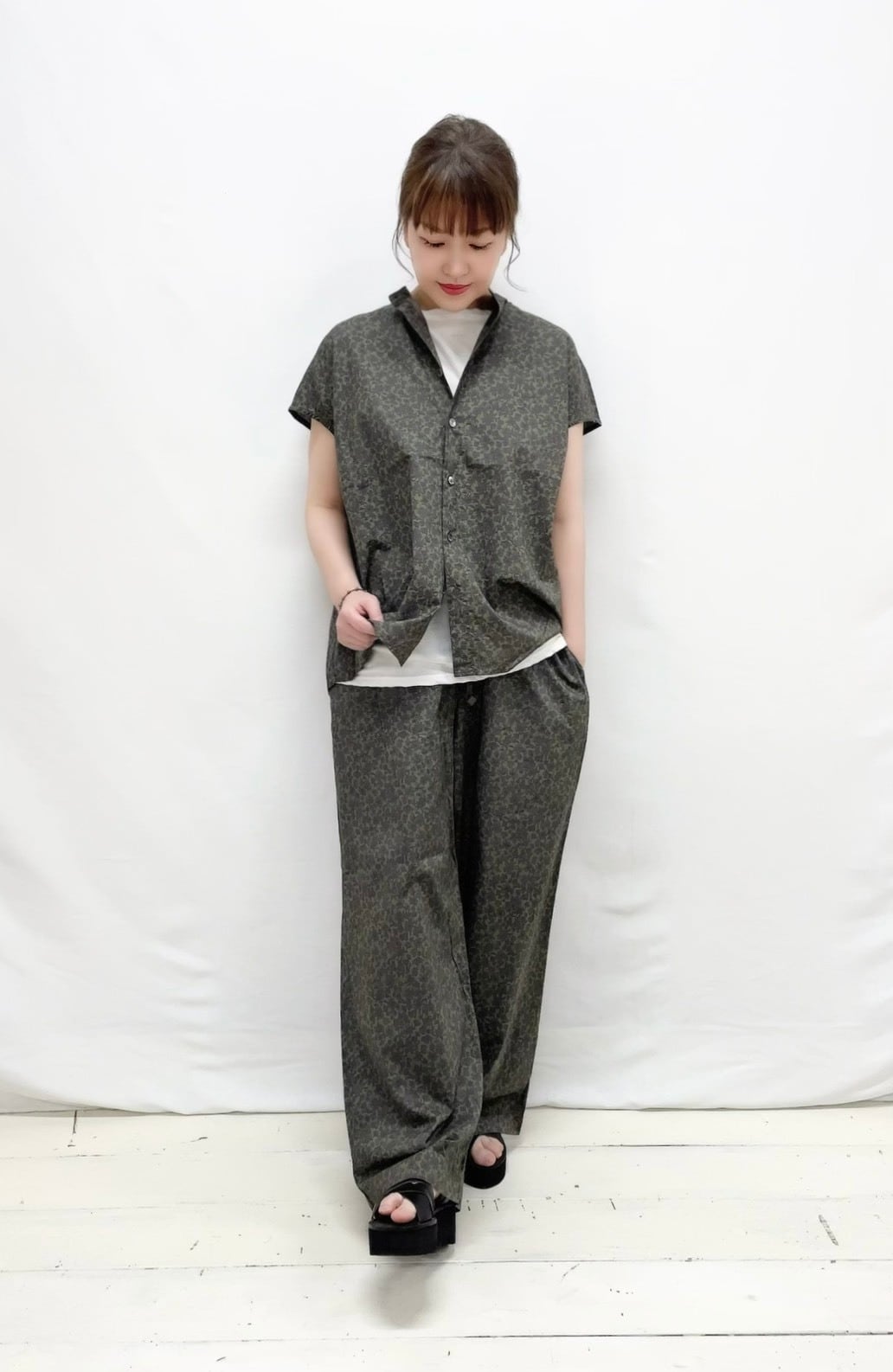 【prit】80/1ローンボタニカルptワイドパンツ / P72617