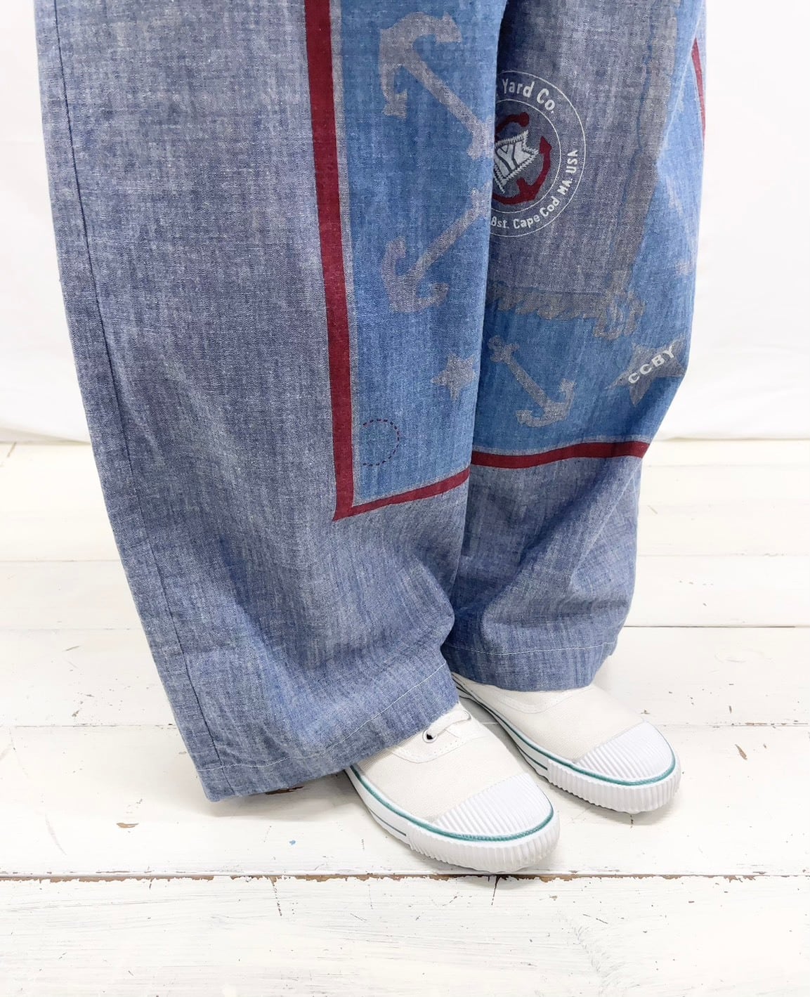 今年は生地をインディゴと白のダンガリー