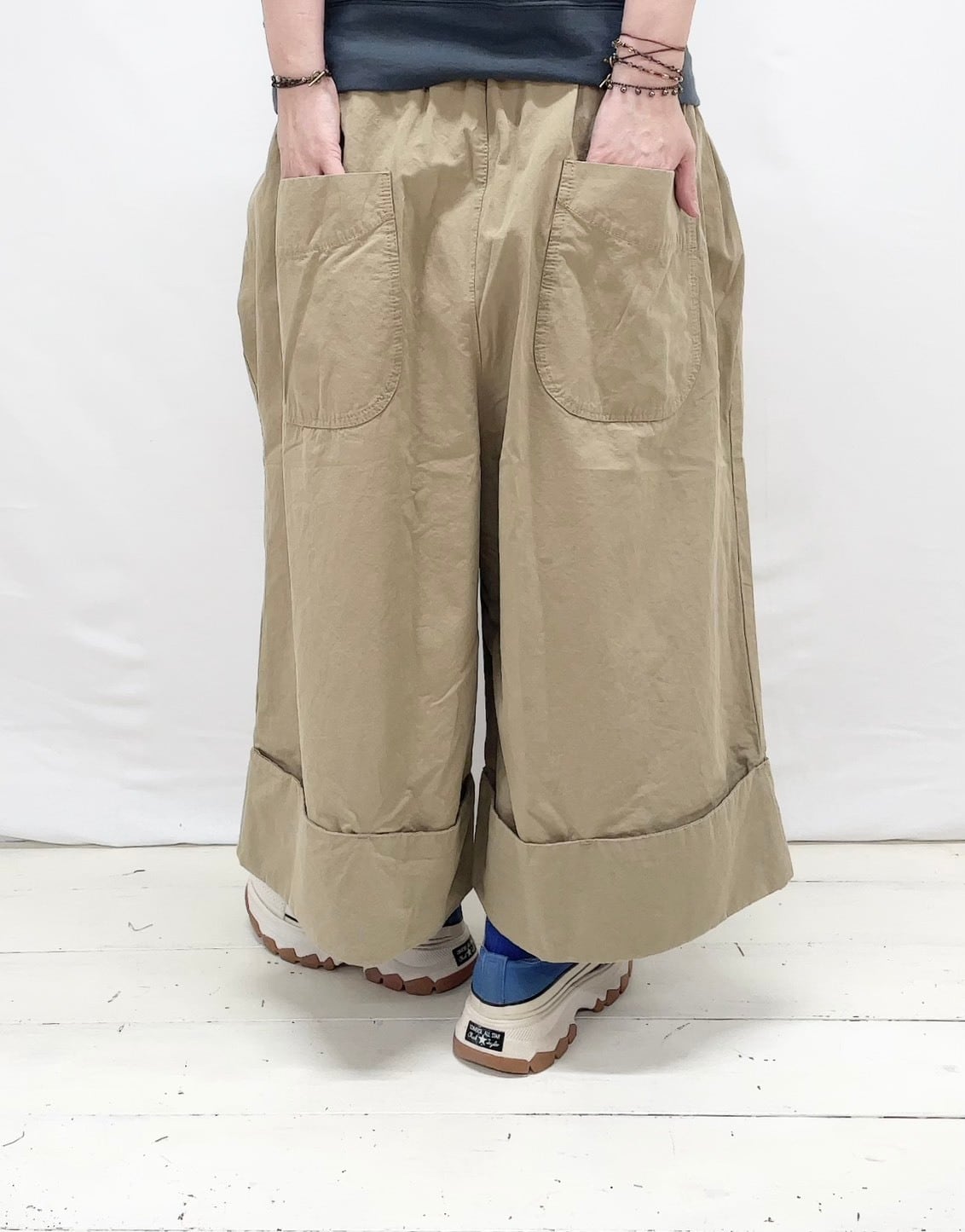 コットンリネンキャンブリックワイド7分丈パンツ