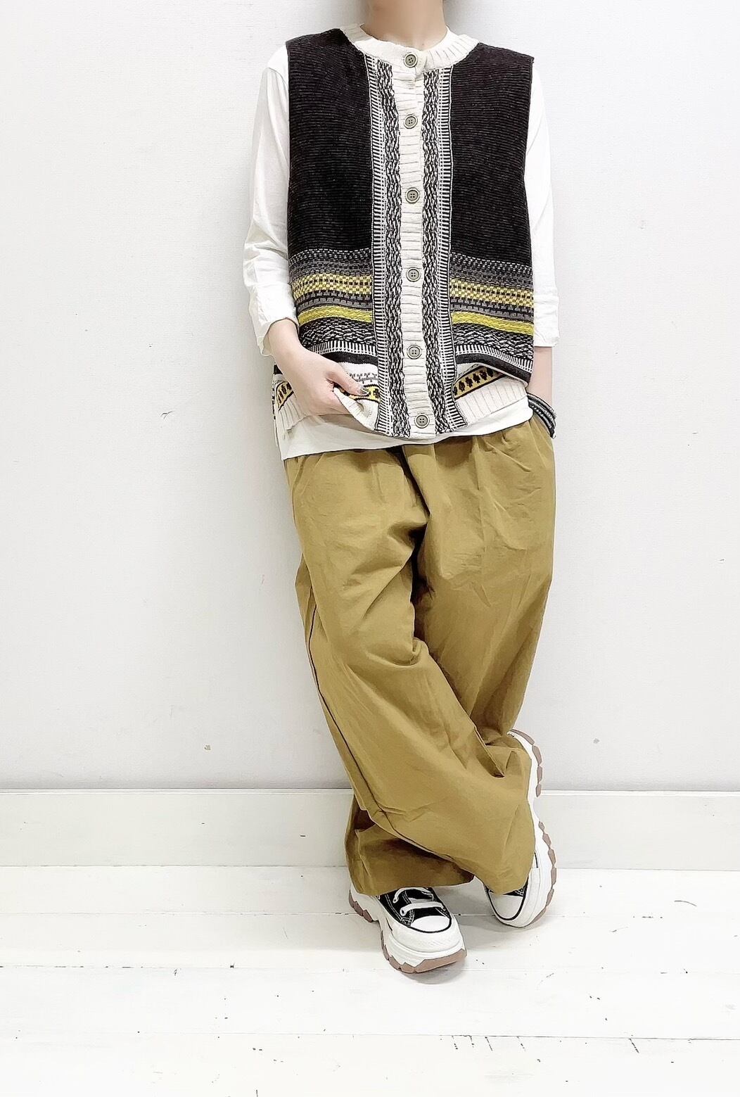 【tumugu】コットンカシミアジャガード2wayベスト / TK23304